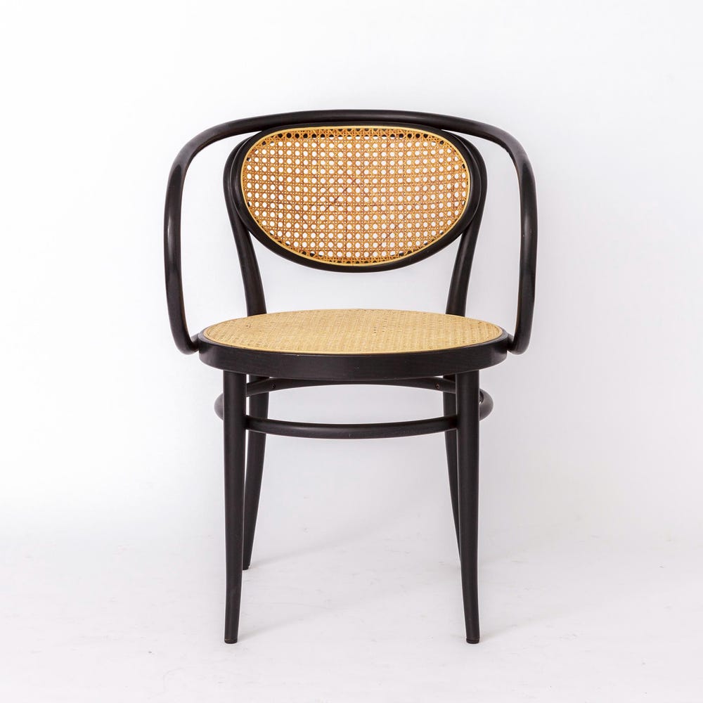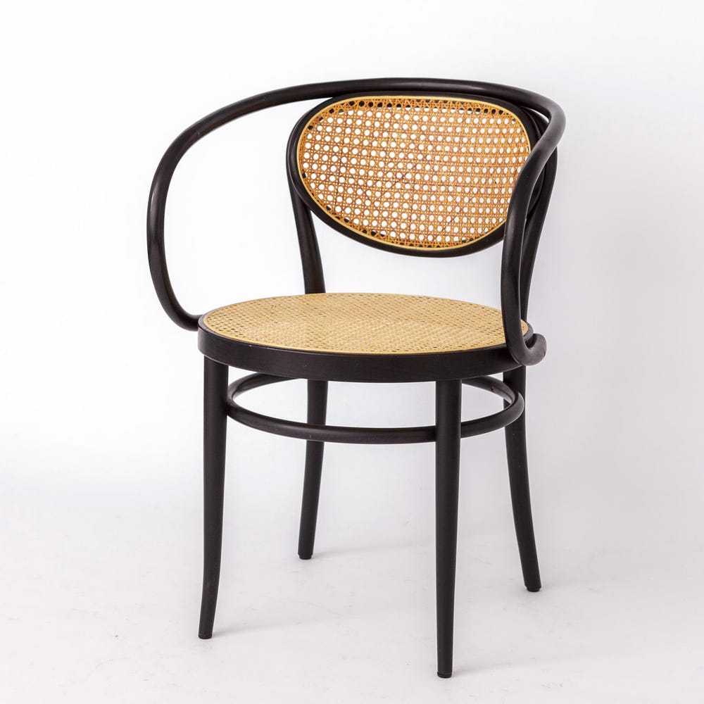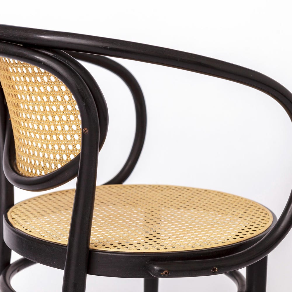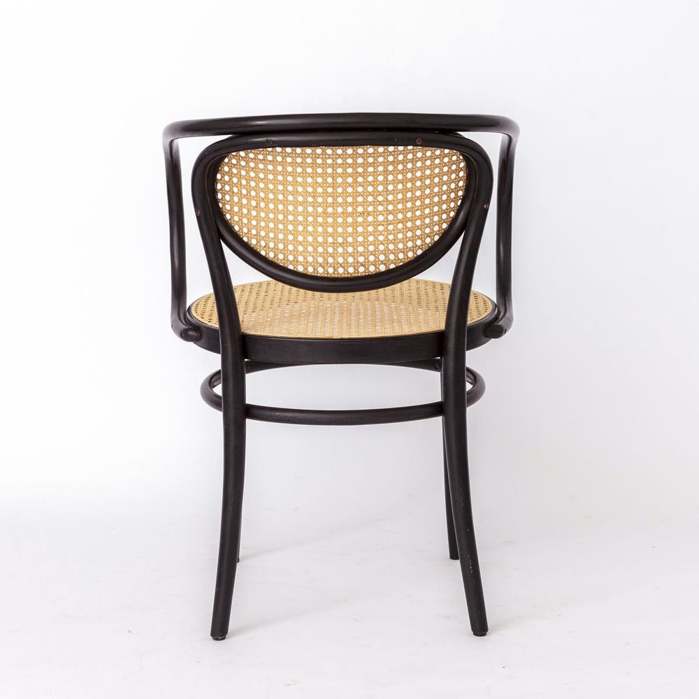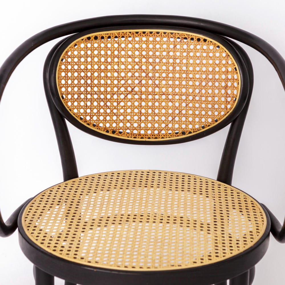 1 of 2 Unique Thonet Armchair, Model 210 R – Black Lacquered Beech with Renewed Viennese Weaving