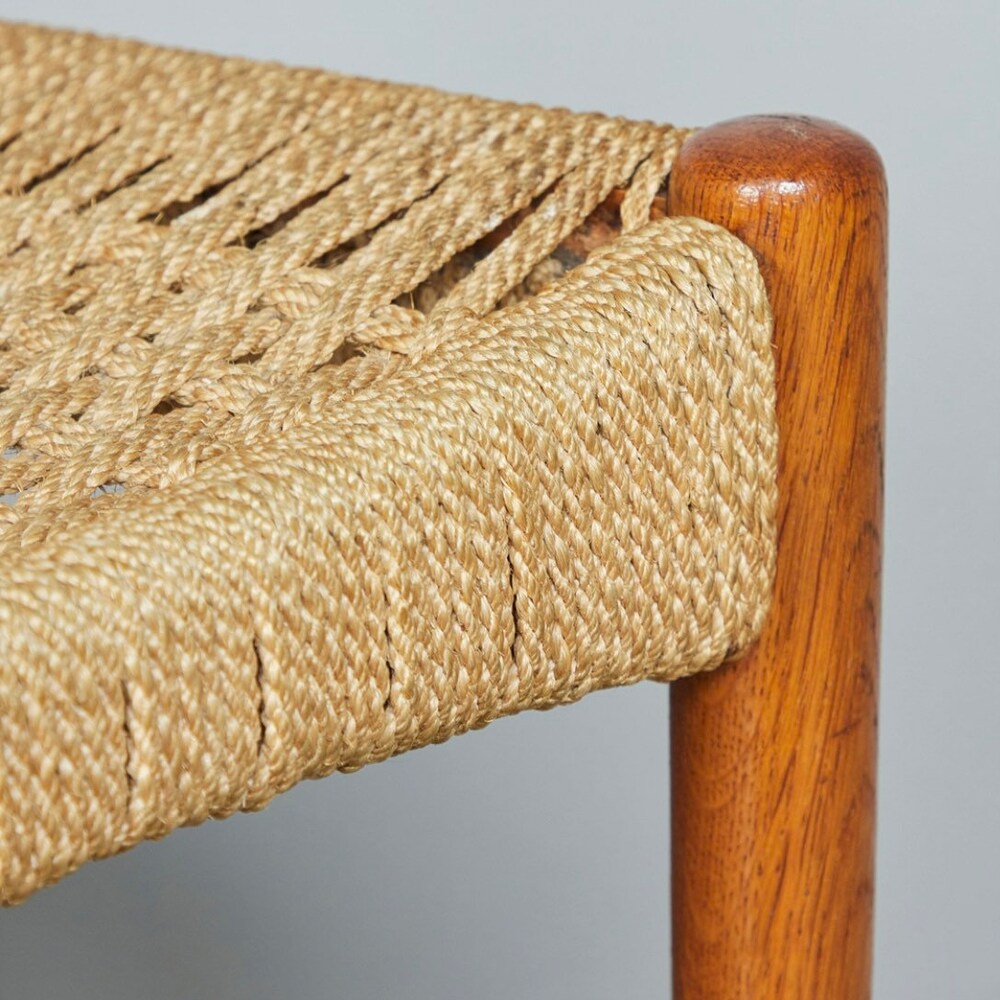 The price is for each item!4 chairs are available. beautiful chairs designed by Arne Hovmand Olsen for Mogens Kold in the early 1960s. Model 175 Warm, honey-colored teak tone. Wonderfully curved, very comfortable backrest. Seat made of braided cord/paper cord. The chairs are in good and well-kept condition. Minor signs of wear (e.g. minor stains […]