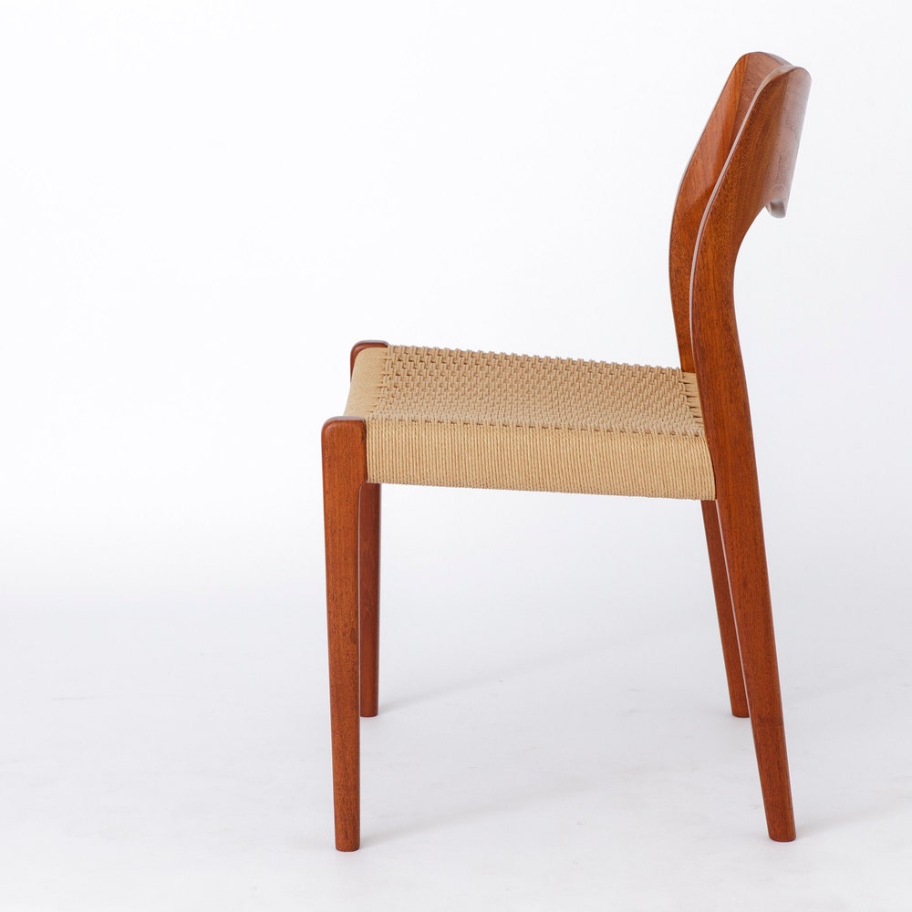 This iconic Model 71 dining chair was designed by Niels Otto Møller in 1951 and remains one of the most celebrated examples of Danish modernism. Carefully restored, each chair is in very good condition, preserving the timeless elegance of the original design.