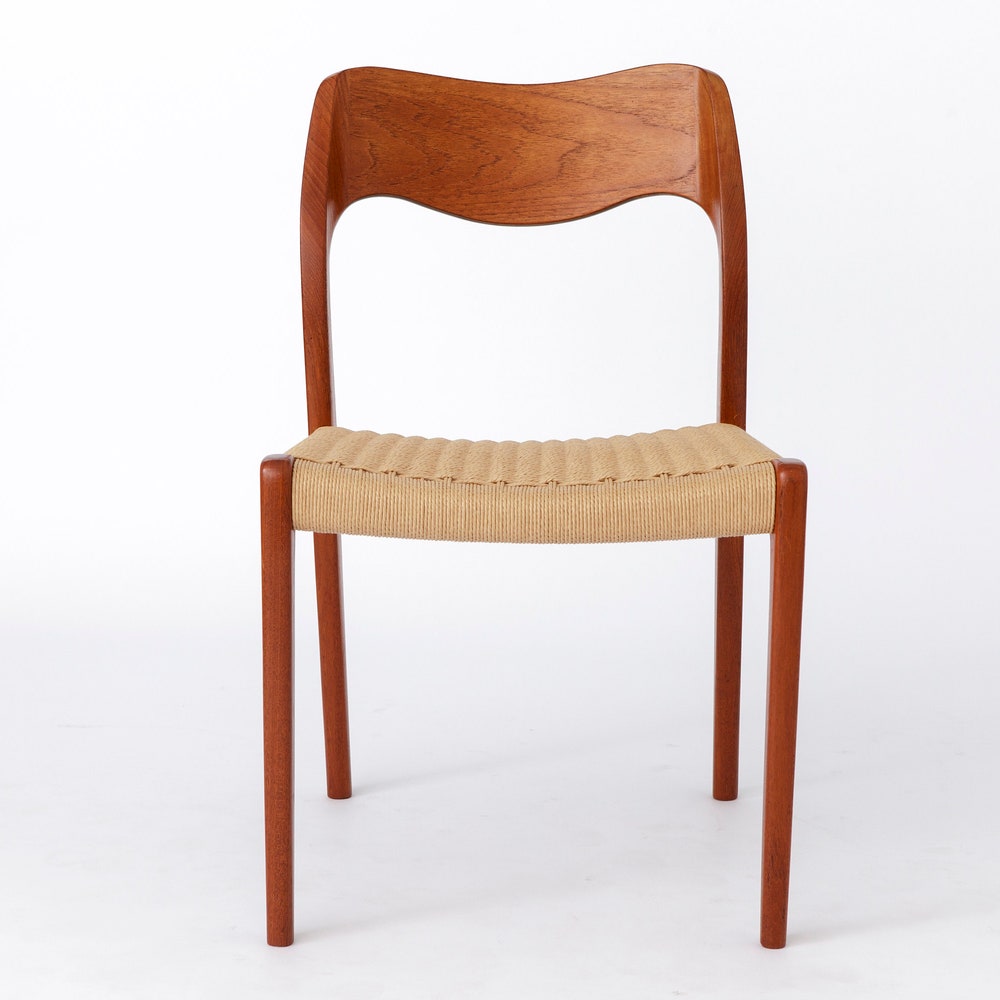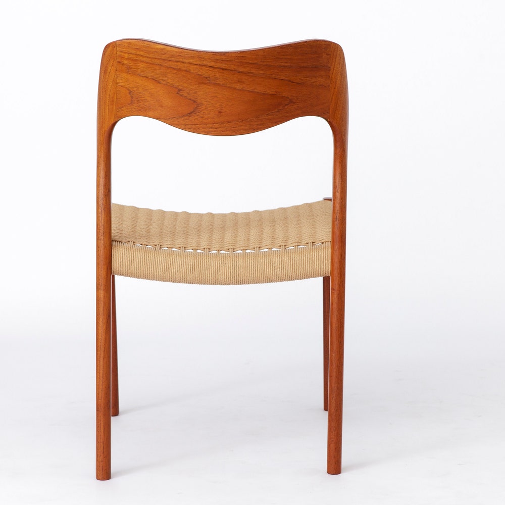 1 of 7 Niels Moller mid century teak dining chair with papercord seats by Niels O. Møller, model 71, Denmark 1950s Vintage