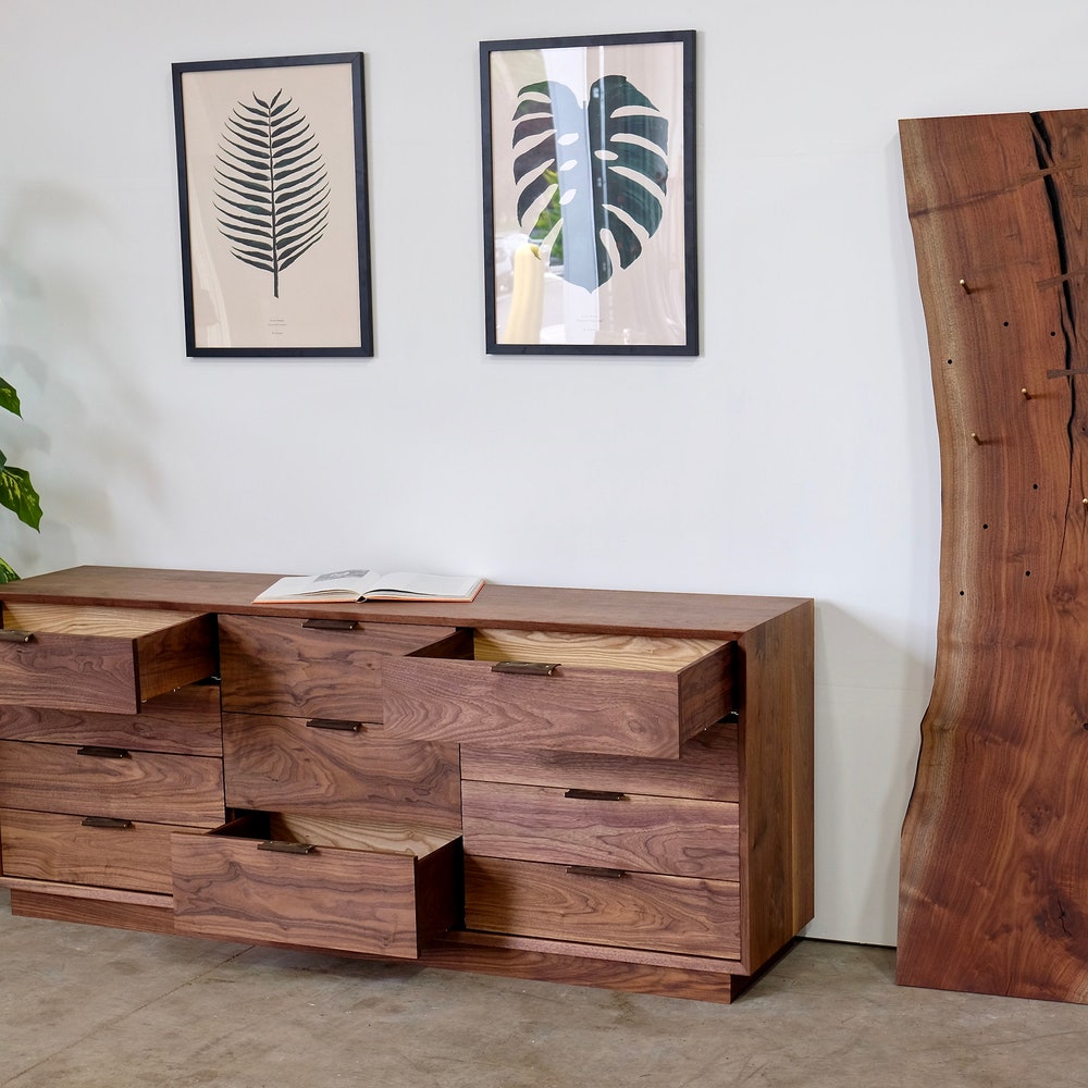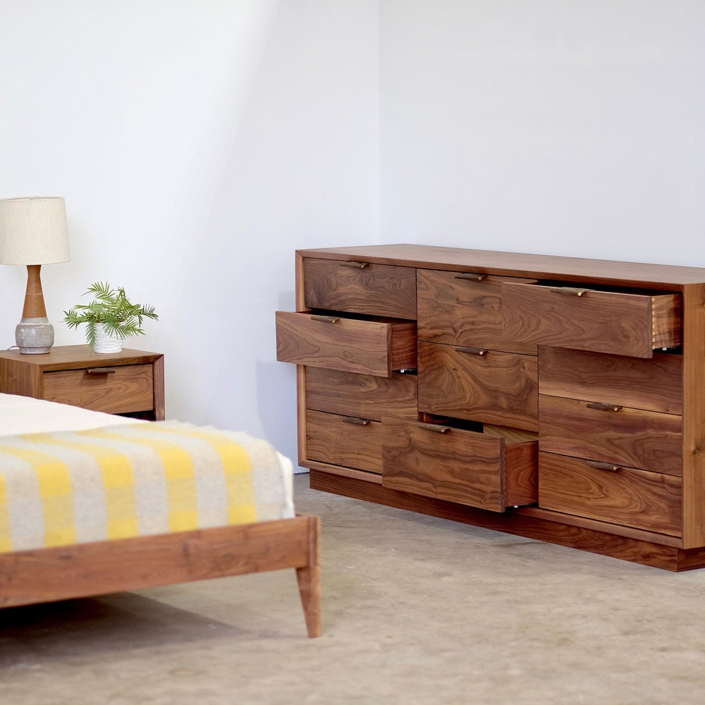 11 Drawer Solid Walnut Dresser | Mid Century Modern Bedroom Chest of Drawers | Handmade Wood Dresser | Danish Modern Buffet
