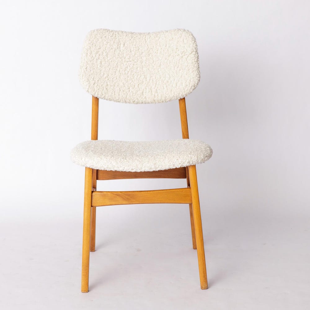 1970s German Vintage Chair – Beech Frame, Sheepswool Seat, Restored Mid-Century Desk or Dining Chair