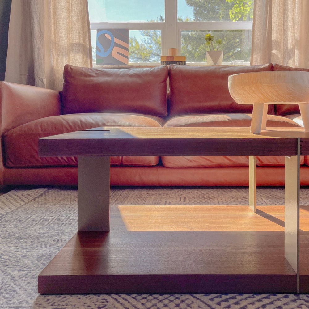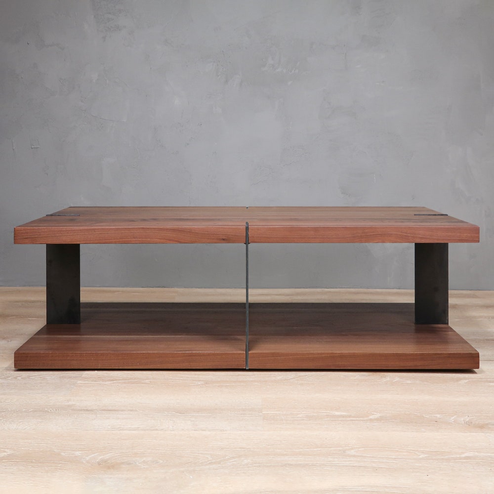 Our coffee tables are made in the USA of solid natural walnut hardwood. Natural walnut has one of the most beautiful grain patterns and is one of the most desired wood species. Due to the natural wood grain, your coffee table will be one of a kind as there is no other alike.