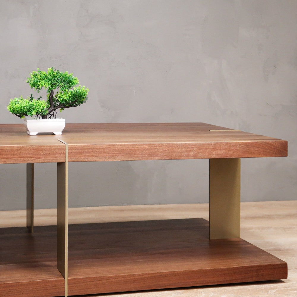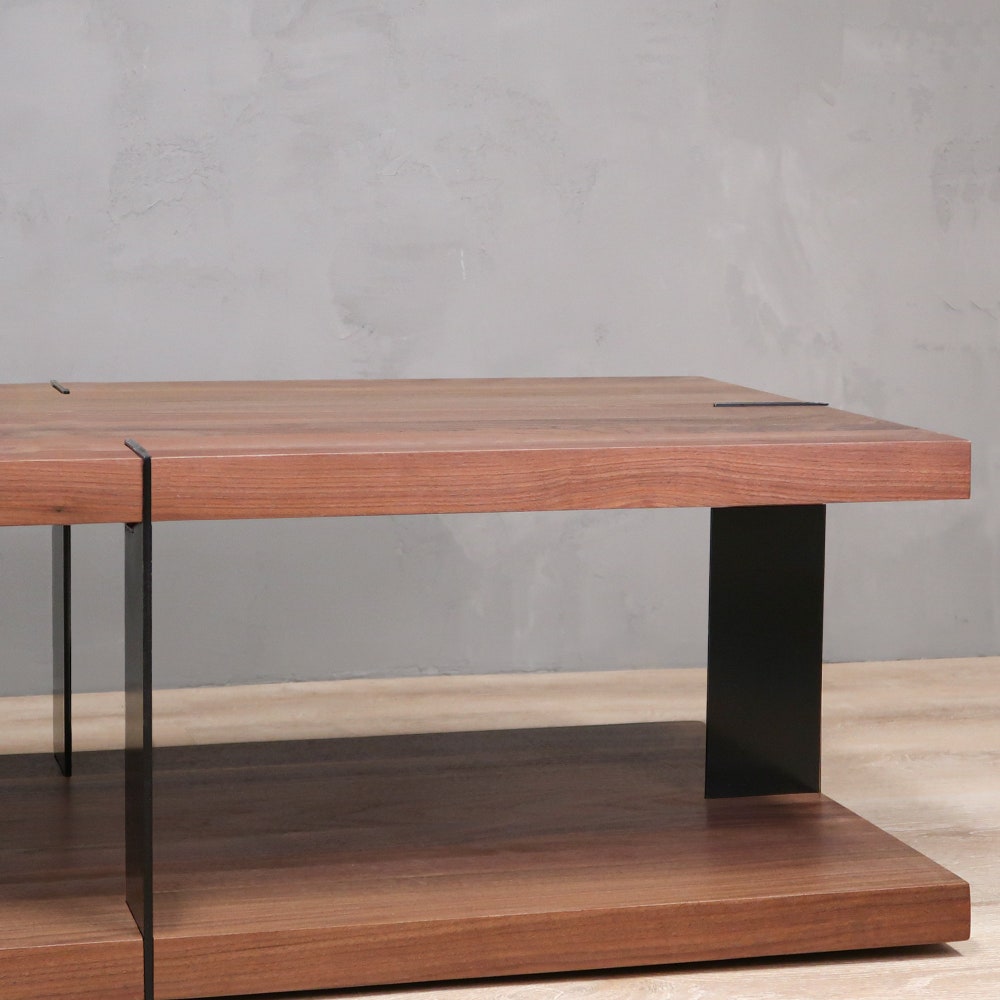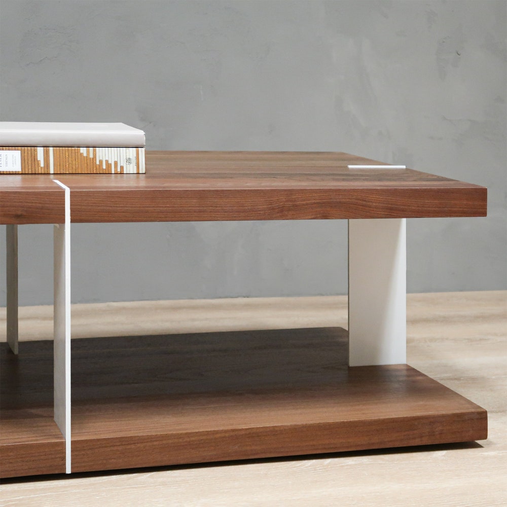 2-Level Rectangular Walnut Coffee Table With Metal Legs