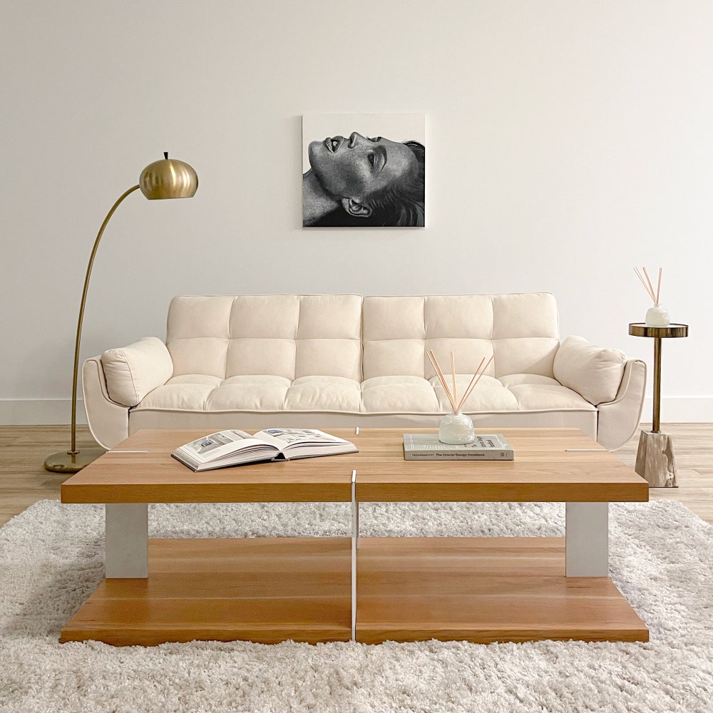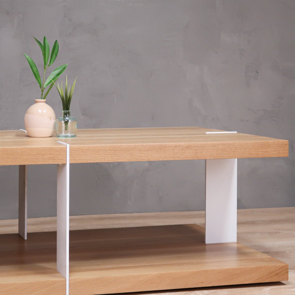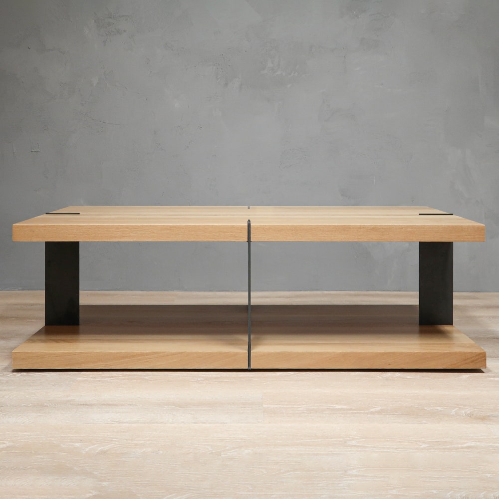 2-Level Rectangular White Oak Coffee Table With Metal Legs