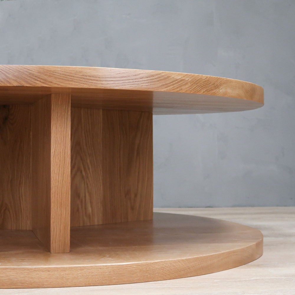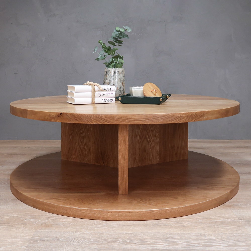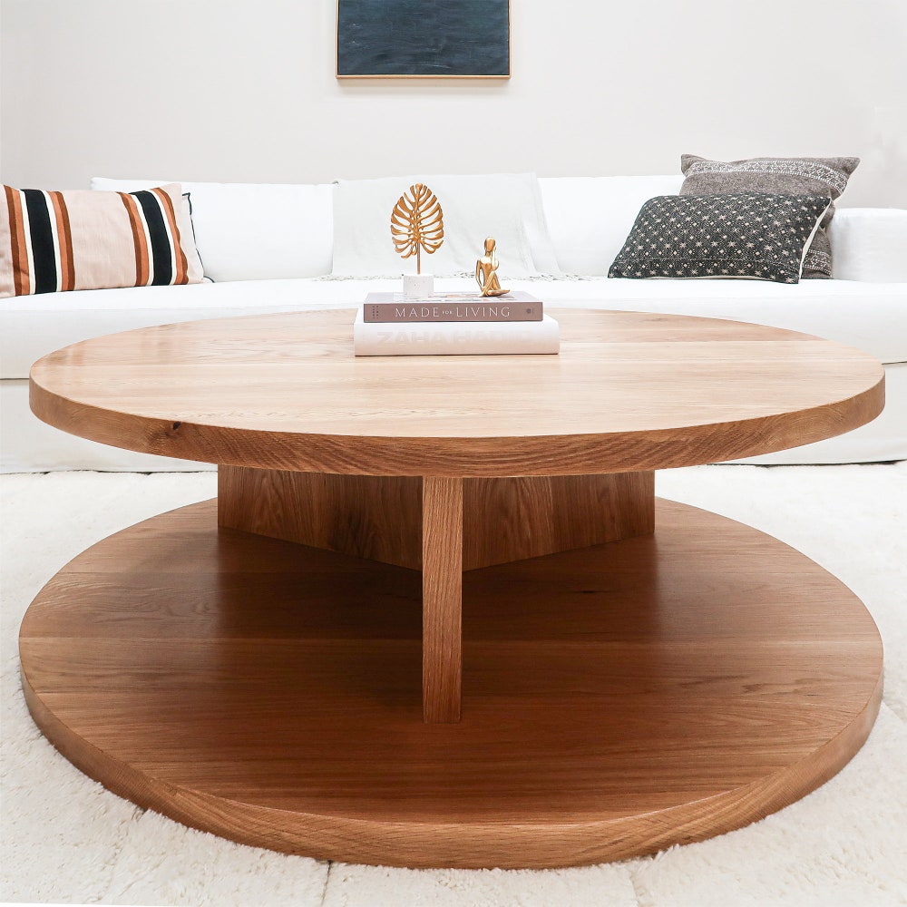 Our 2-Level Round White Oak Coffee Table are designed to be aesthetically pleasing and conveniently efficient. Simple silhouettes and wooden accents complement traditional and modern design styles.