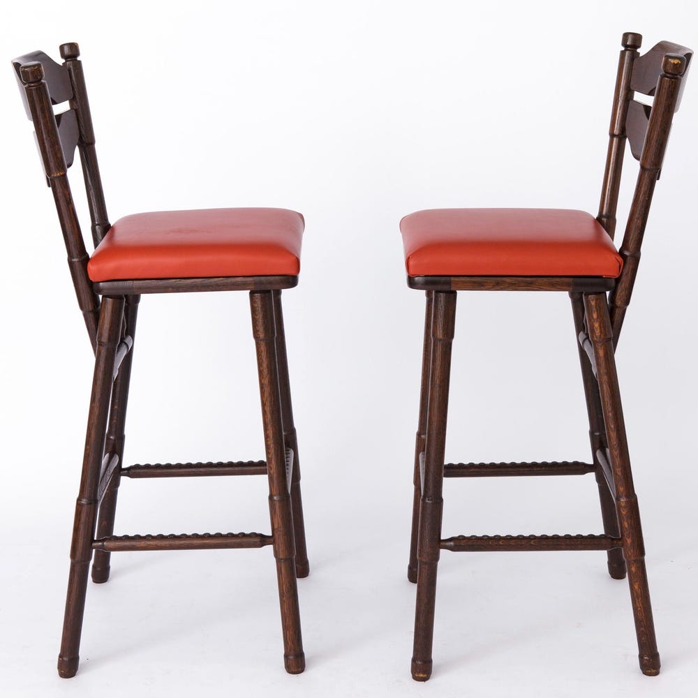 2 Stunning Vintage 1980s Bar Stools | Retro Red-Orange Leather, German Craftsmanship