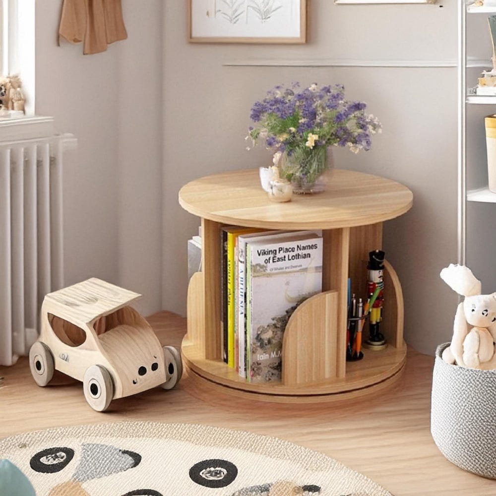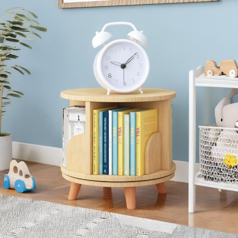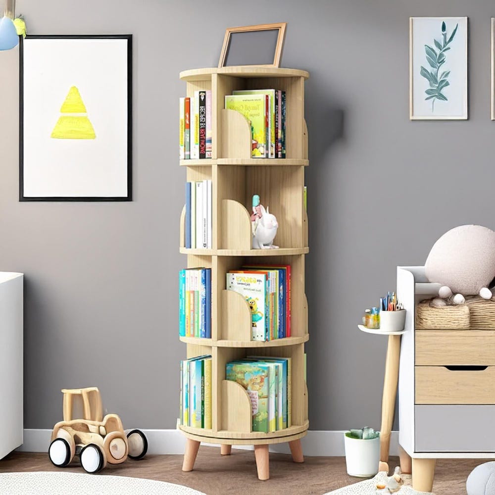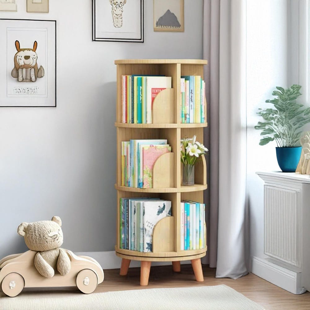 🌀 360° Rotating Wooden Bookshelf – Montessori Inspired Book Organizer for Kids & Home
