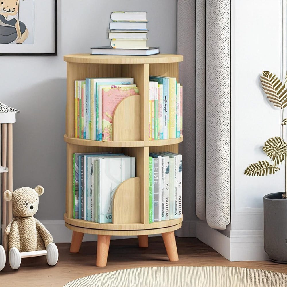 2 Tier 360 Rotating Bookshelf, Solid Wood Bookcase, Toddler Bookshelf, Industrial Bookcase, Wooden Bookshelf, Office Corner Bookcase
