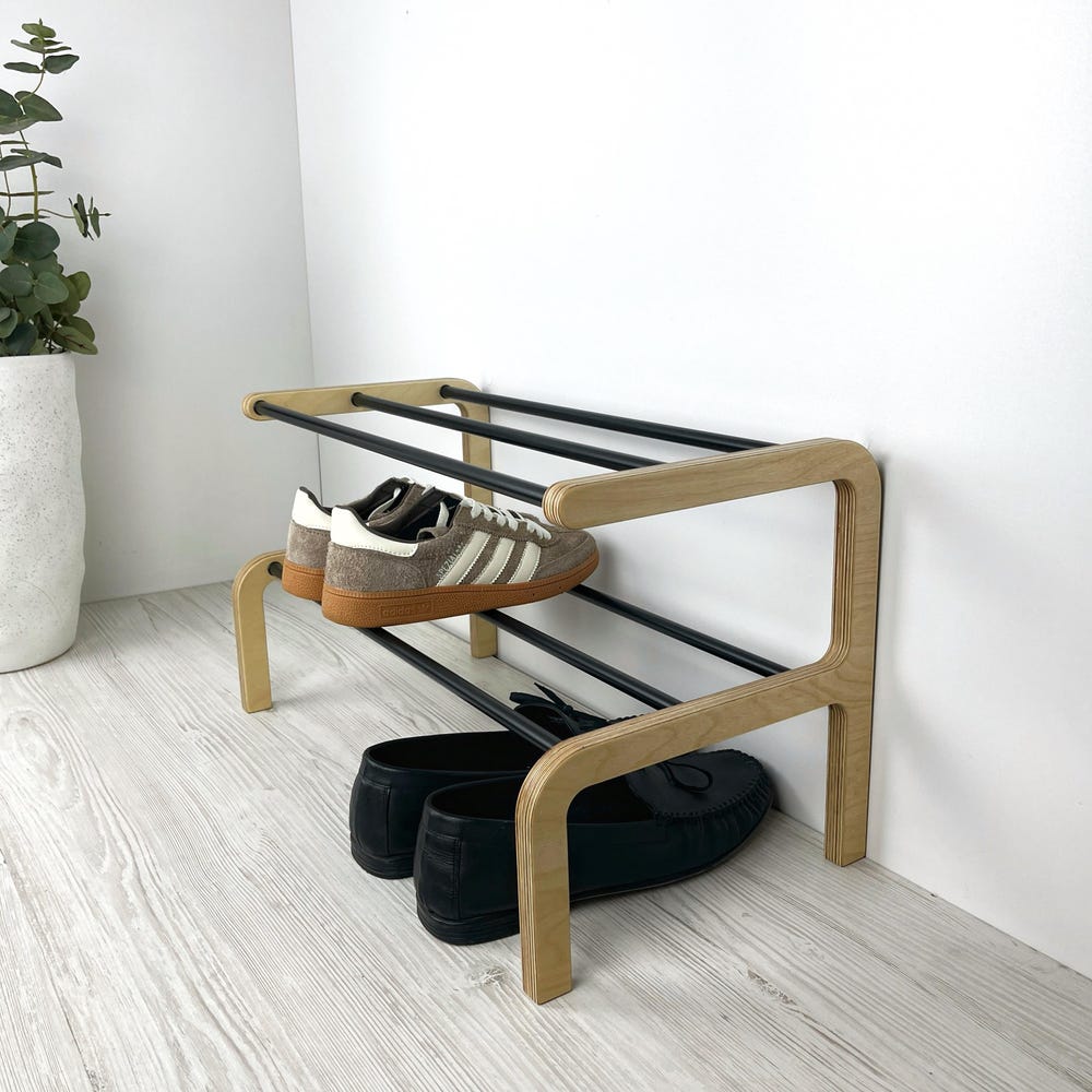 Our shoe organizer stand features a practical 2-tier shoe shelf that offers ample storage without compromising on style. This standing shoe rack is not only functional but also serves as a chic floor shoe rack that can stand free-standing in any room.