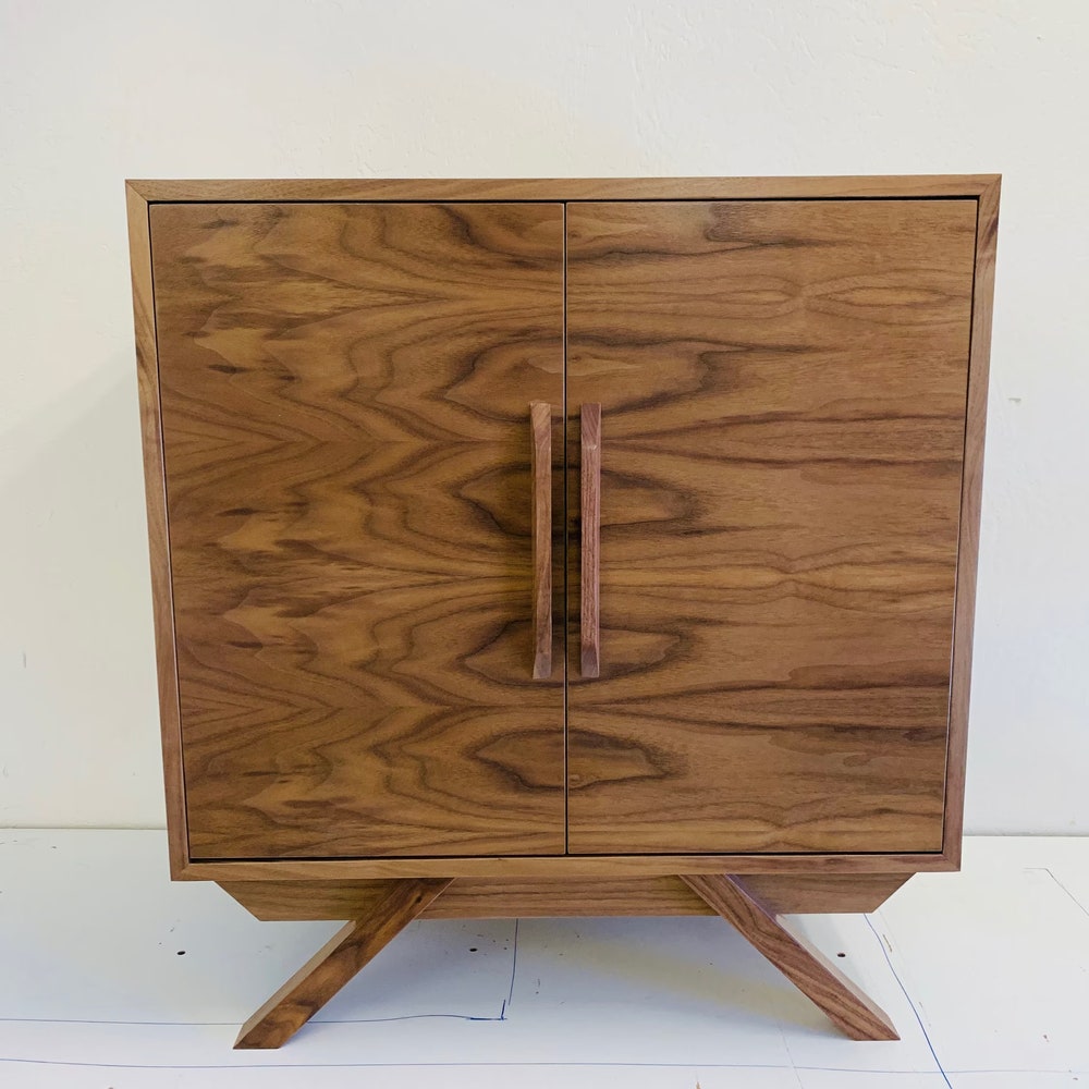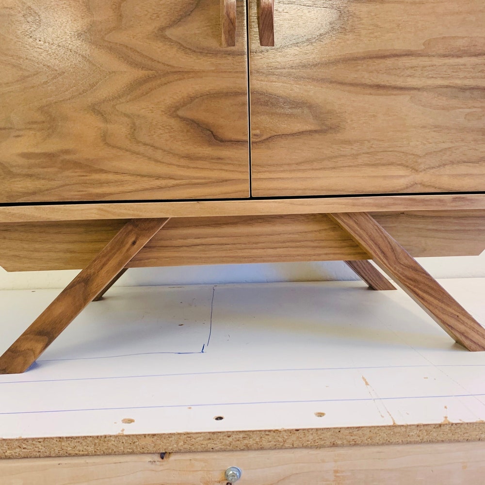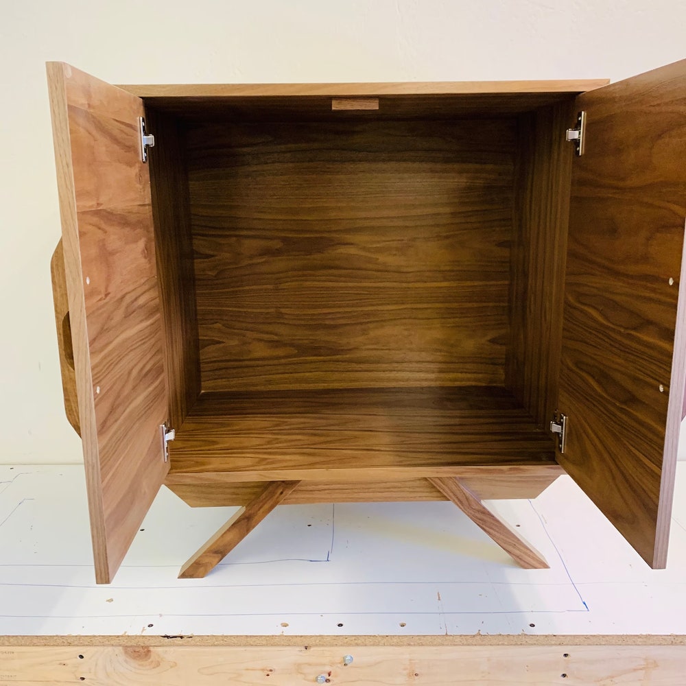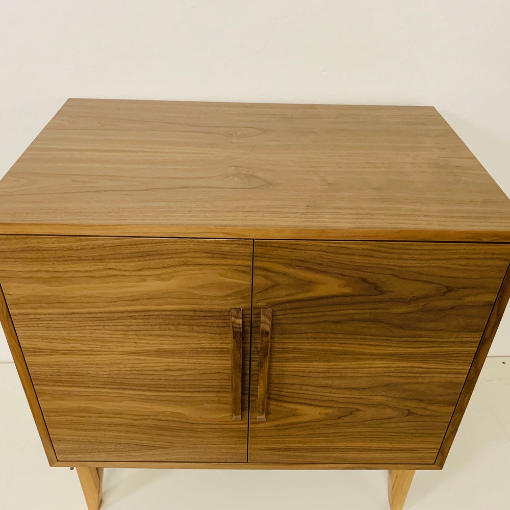 Made with a combination of top grade veneer and solid wood legs and handles. All surfaces are sealed with a clear satin finish. Snap close hinges are used on all doors and soft close drawer glides. Drawer boxes are made of Baltic birch wood and are dovetail jointed.