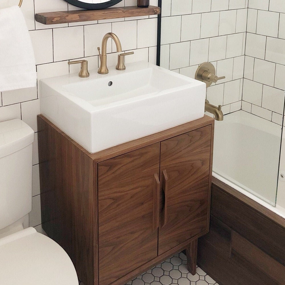 24″ Mid Century Bathroom Vanity Cabinet – Single Sink, 2 Doors, No Drawers – Custom to Your Unique Style – For New Home Build or Remodel