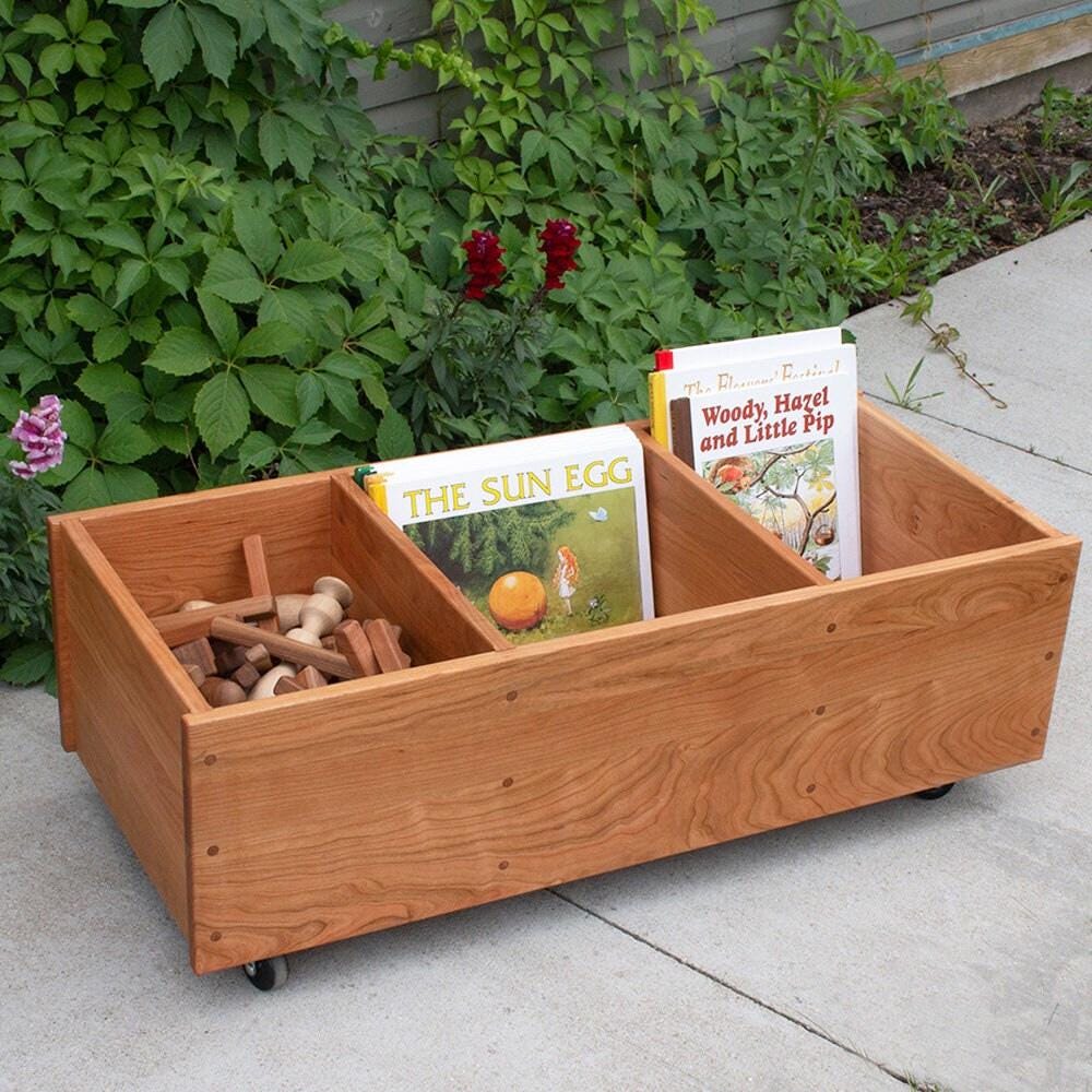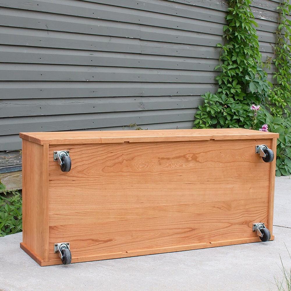 This versatile storage bin can be used upright, on it’s side or on it’s back. On it’s back you can add rolling wheels for movable storage. Made in the USA from solid cherry wood with easy assembly. Cherry wood is a beautiful, living wood that darkens with light exposure, transforming into a rich reddish brown over time.