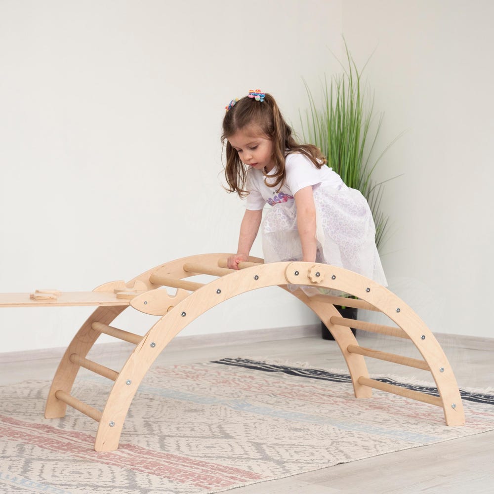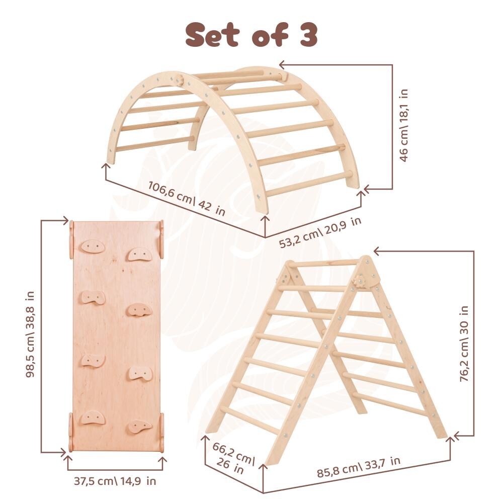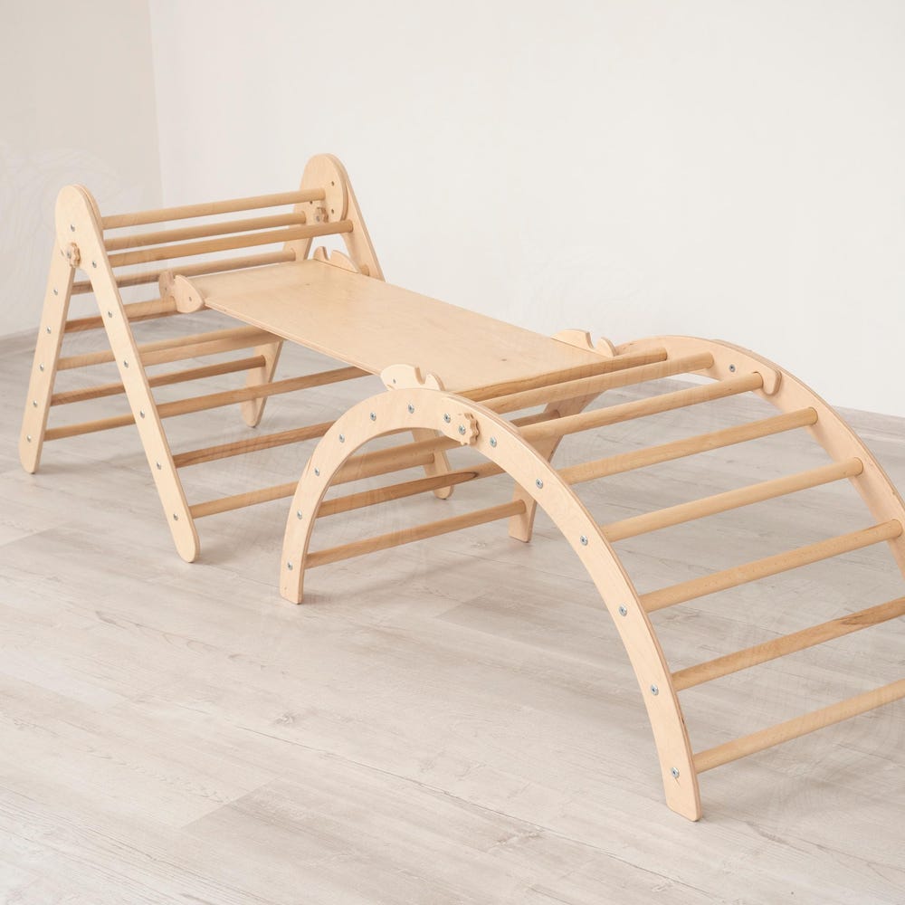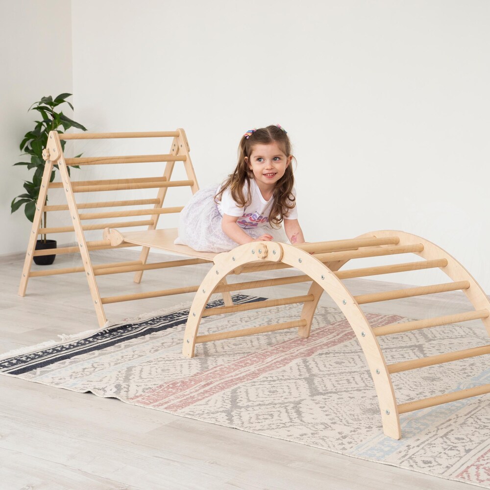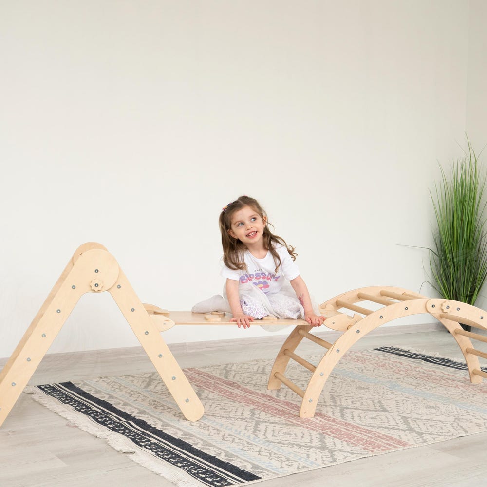Turn your home into a fun and safe adventure space! This beautifully crafted Montessori climbing set is perfect for toddlers and kids aged 2 to 8 years, promoting physical development and imaginative play. It includes: