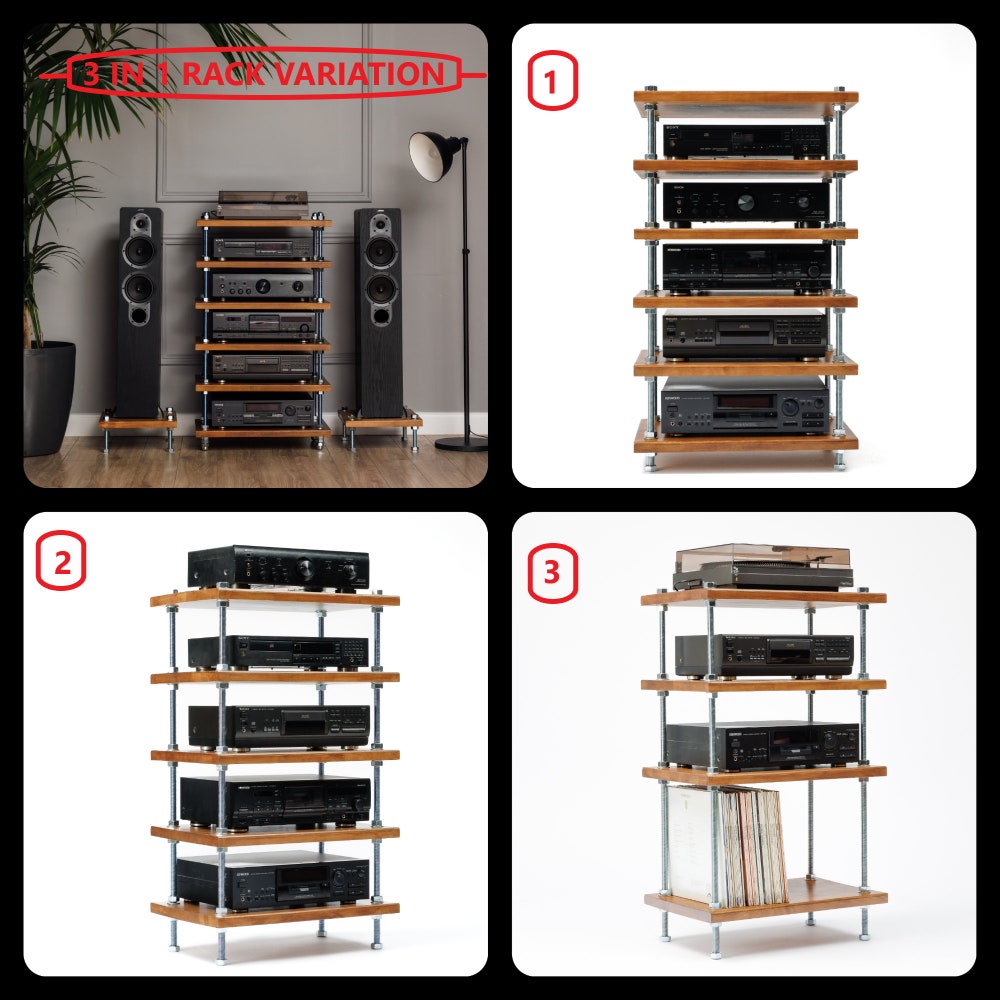 3 in 1 stand, Covered Bolts 6 Tier Threaded Rod stand, Industrial threaded rod stand, vinyl stand, audio rack, Industrial turnable stand