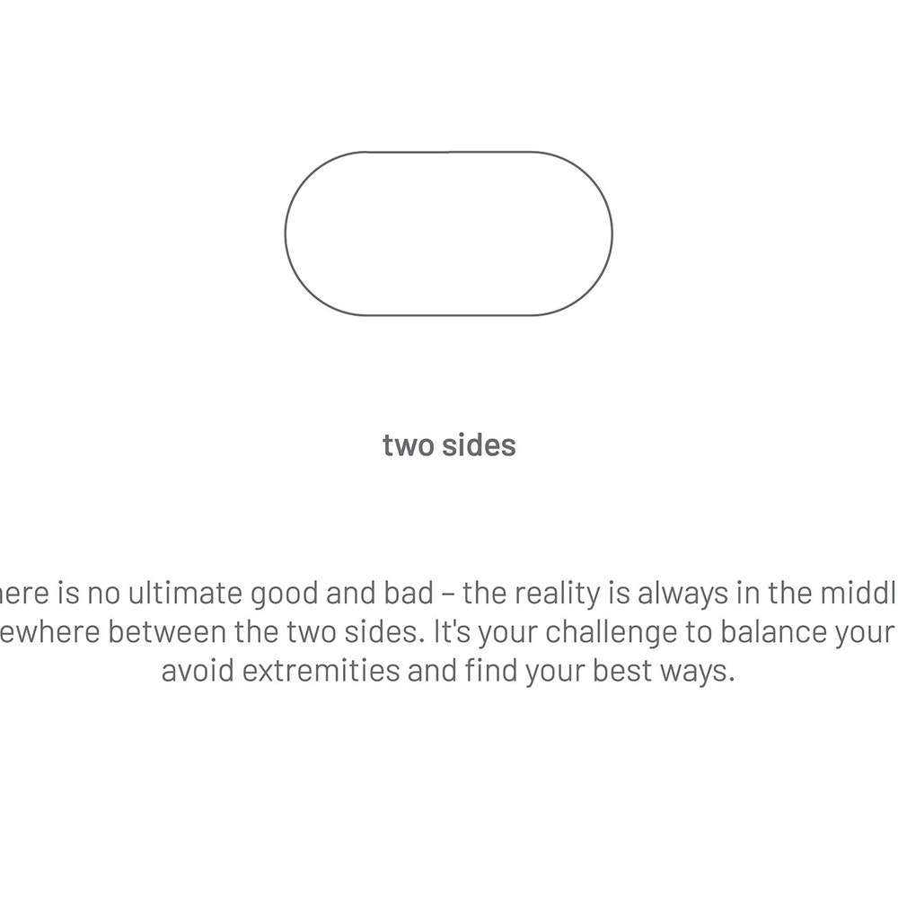 There is no ultimate good and bad – the reality is always in the middle, somewhere between the two sides. It’s your challenge to balance your life, avoid extremities and find your best ways.