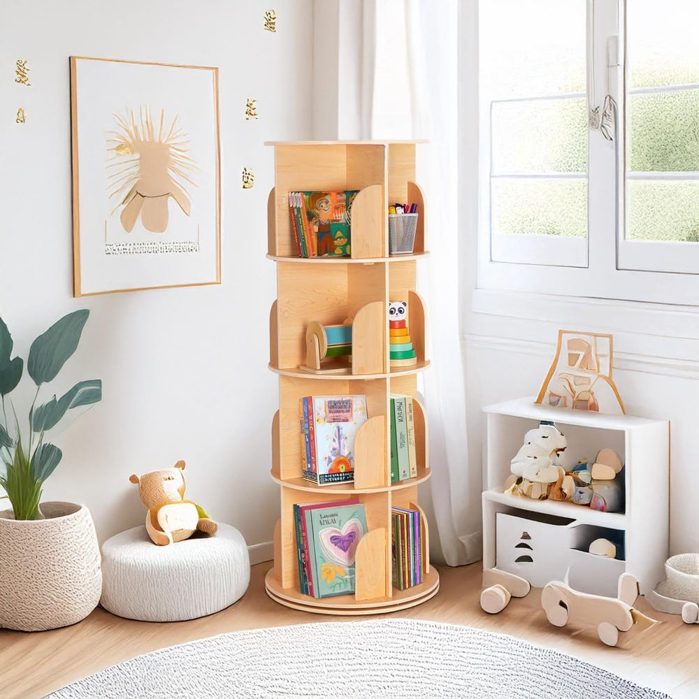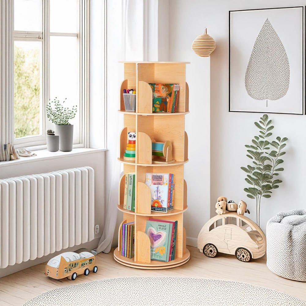 This bookshelf is a perfect choice for those looking for a rotating bookshelf, whether for a kids library, office bookcase, or desktop bookshelf. It works wonderfully as a rotating rack, a Montessori bookshelf, or even a stylish floor bookshelf. With its clever design, it serves as a book stand, book organizer, or modern rotating bookcase, fitting beautifully in both children’s rooms and professional spaces. From industrial bookshelves to space-saving kids bookshelves, this unit adapts to your lifestyle and aesthetic effortlessly.