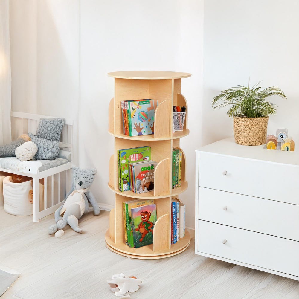 3 Tier 360 Rotating Bookshelf, Rotating Bookcase, Montessori Bookshelf, Corner Shelf, Baby Bookshelf, Rotating Rack, Montessori Furniture