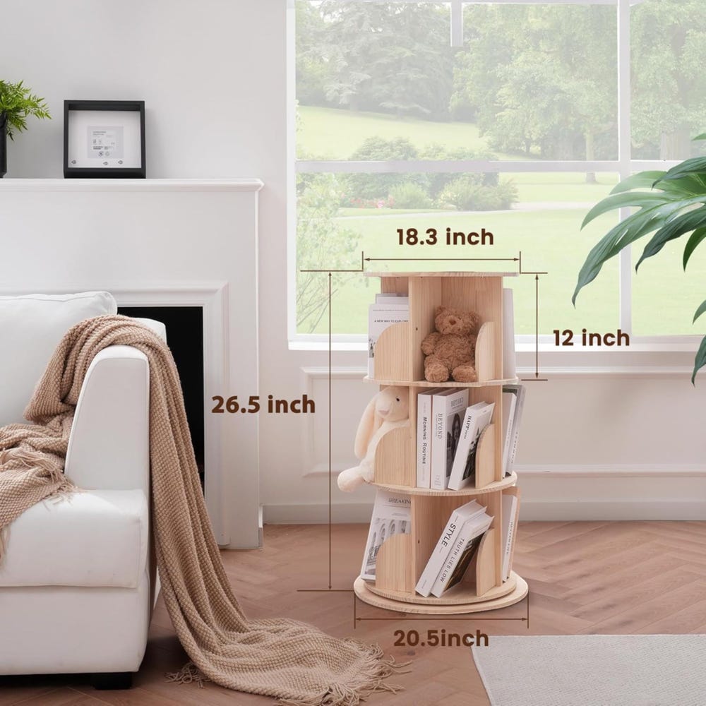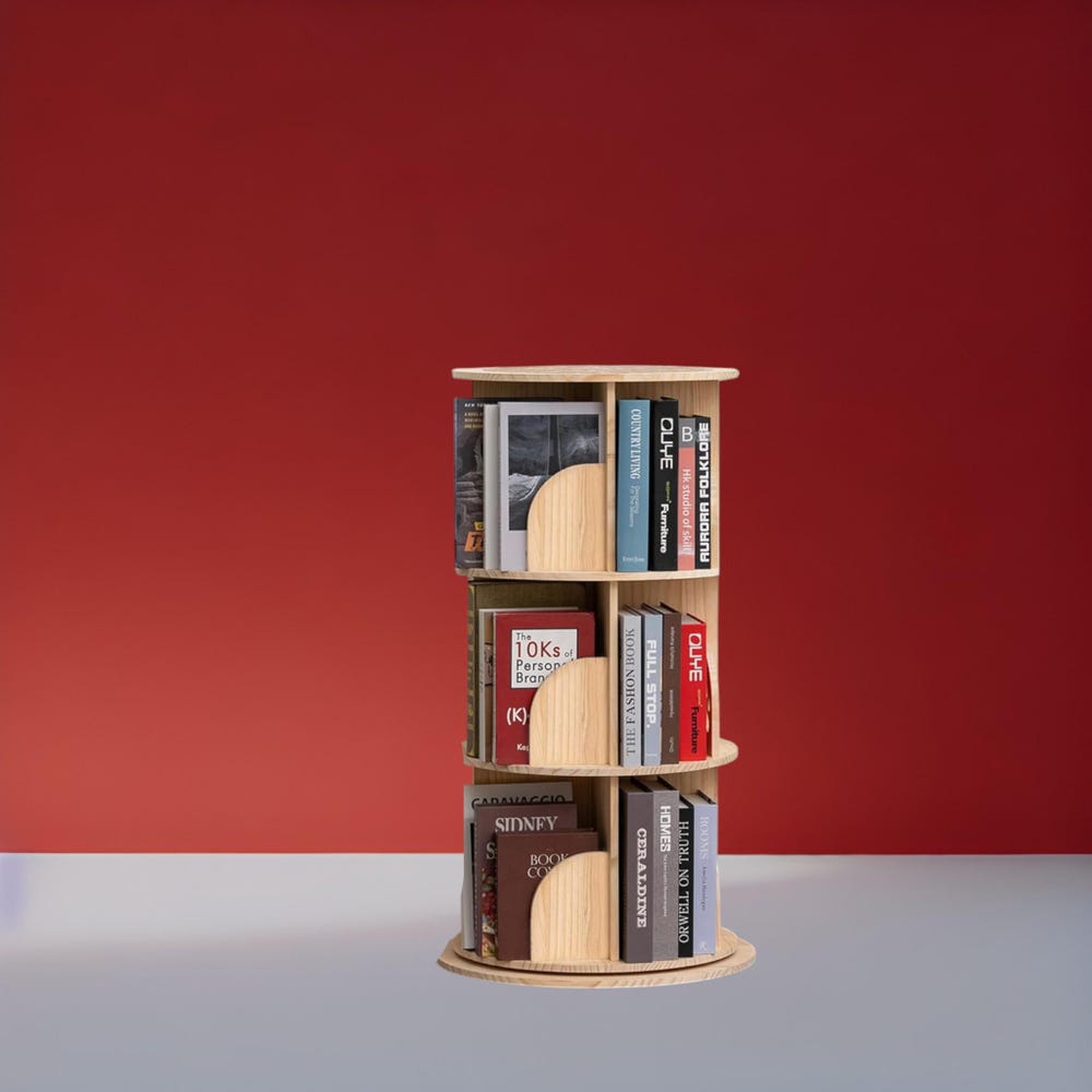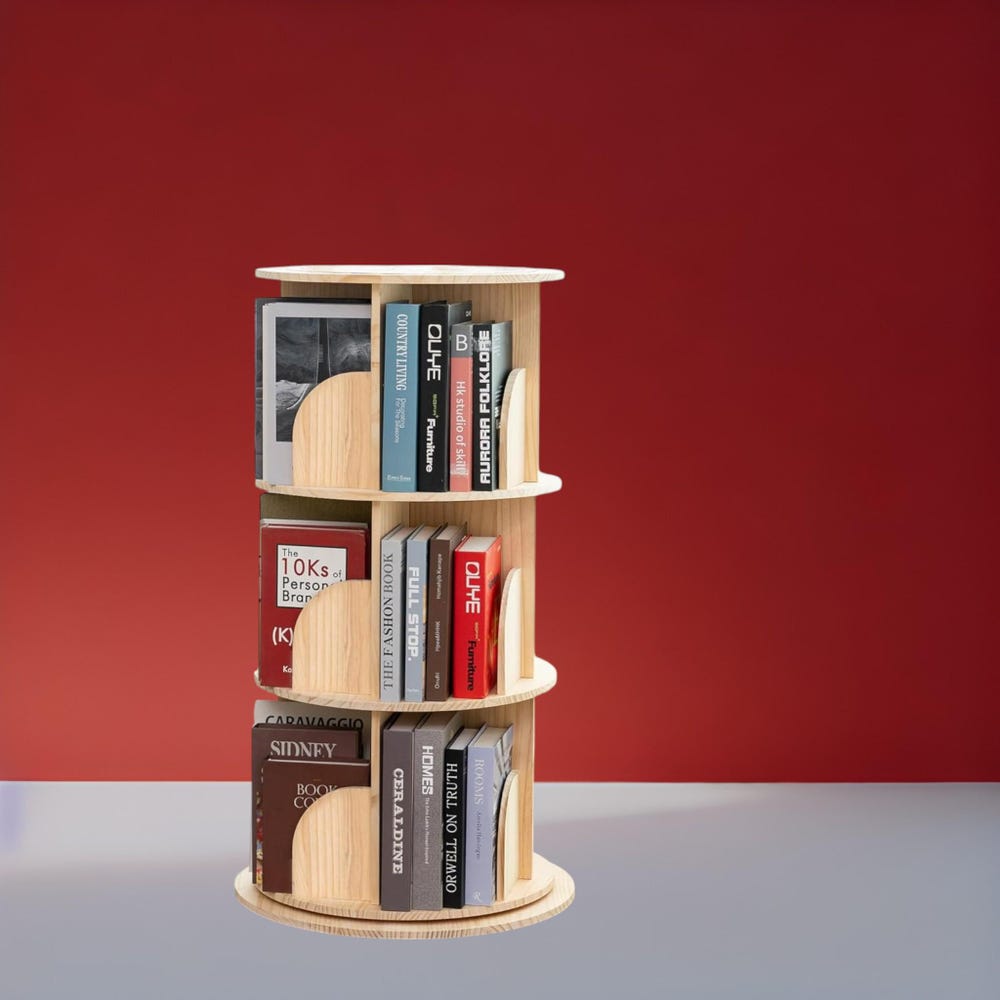 3-Tier 360 Rotating Bookshelf – Space-Saving Wooden Book Organizer
