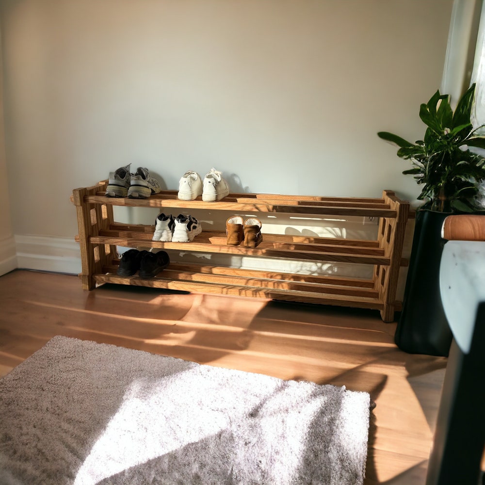 Organize your entryway with our Unique and Stylish Wooden Shoe Rack, a perfect blend of functionality and style. This custom shoe organizer is designed to keep your space tidy while adding a touch of rustic elegance to your home.