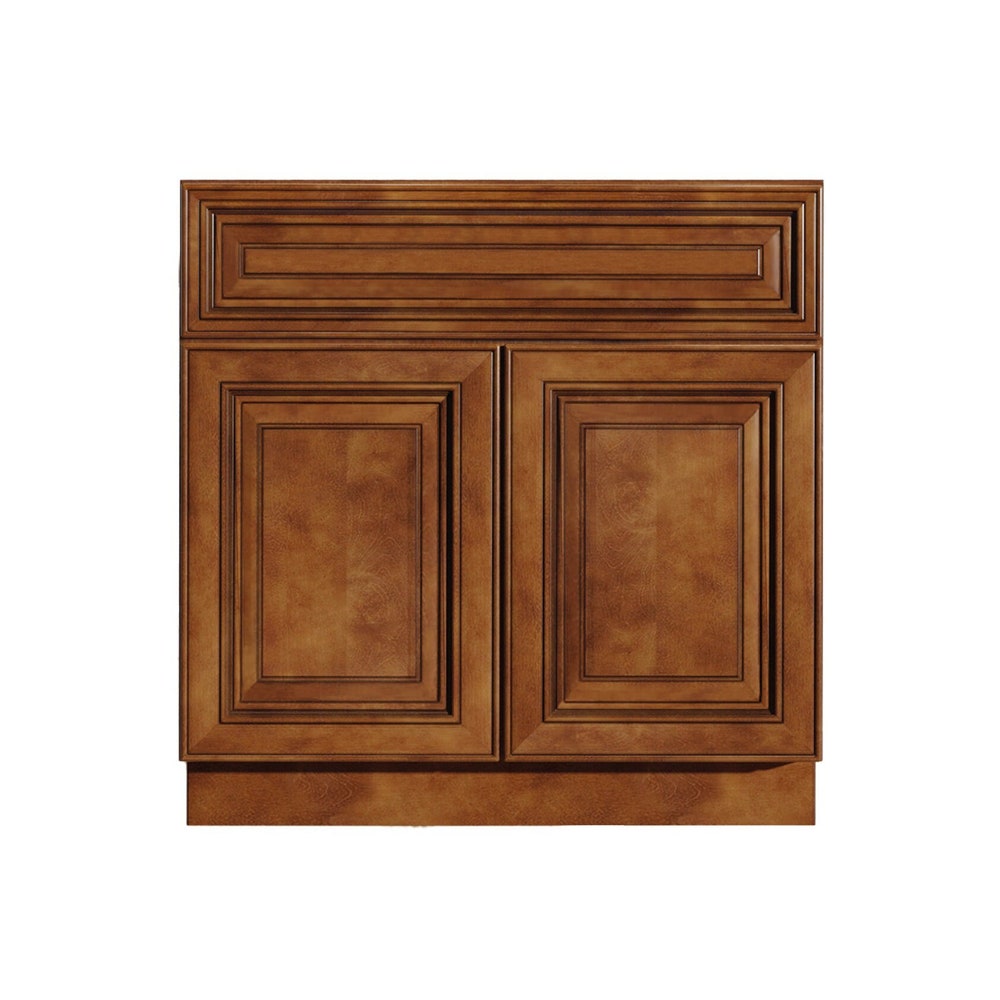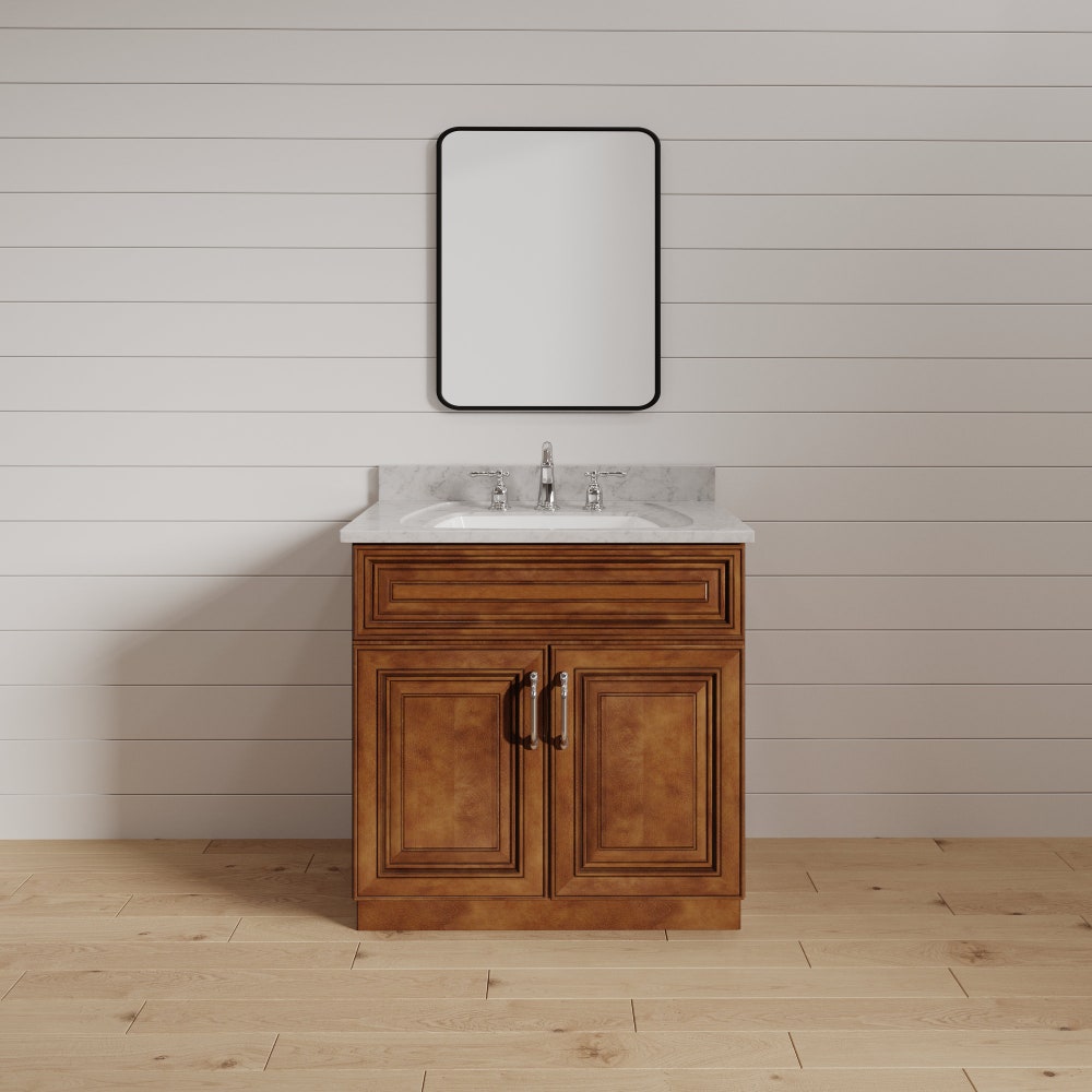 30 Inch Saddle Brown Raised Panel Single Sink Bathroom Vanity with Double Doors, Brown Stained Bathroom Furniture – 30″ W x 34.5″ H x 21″ D
