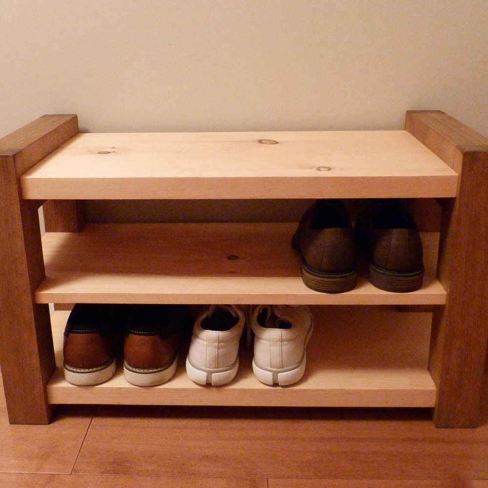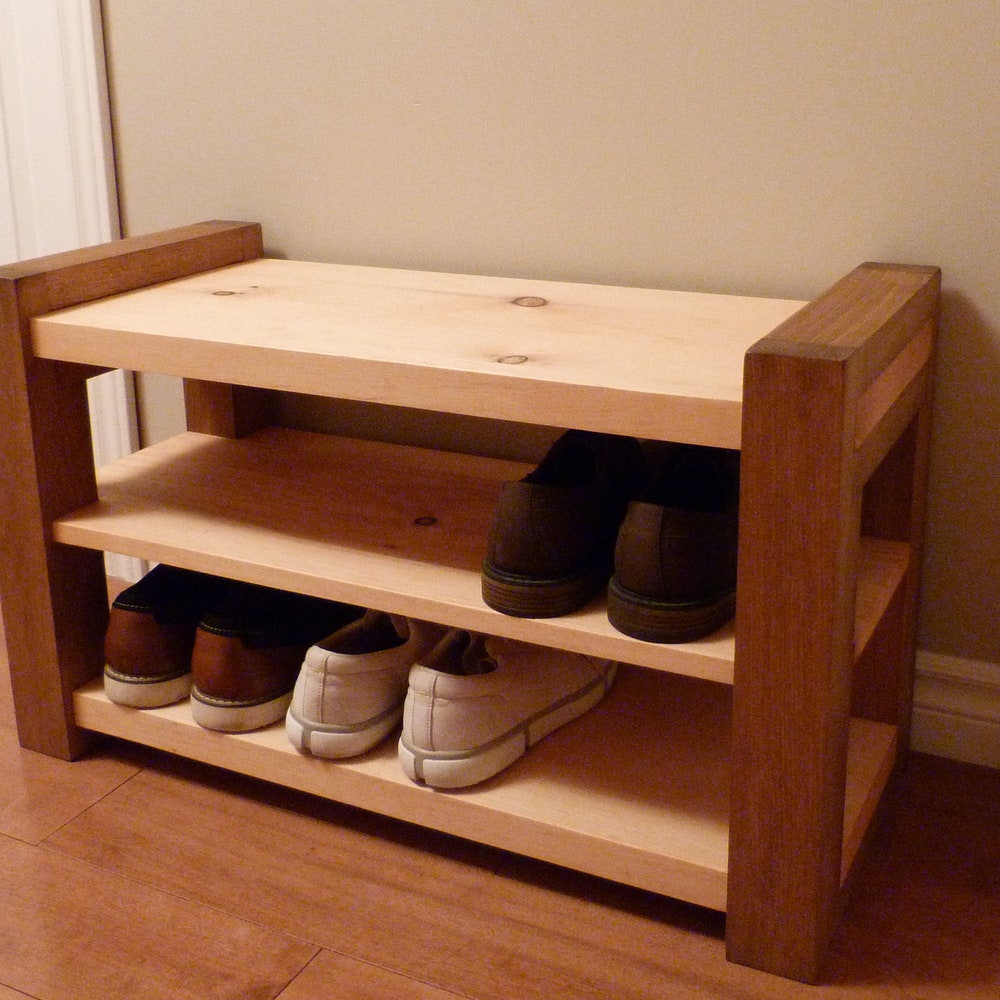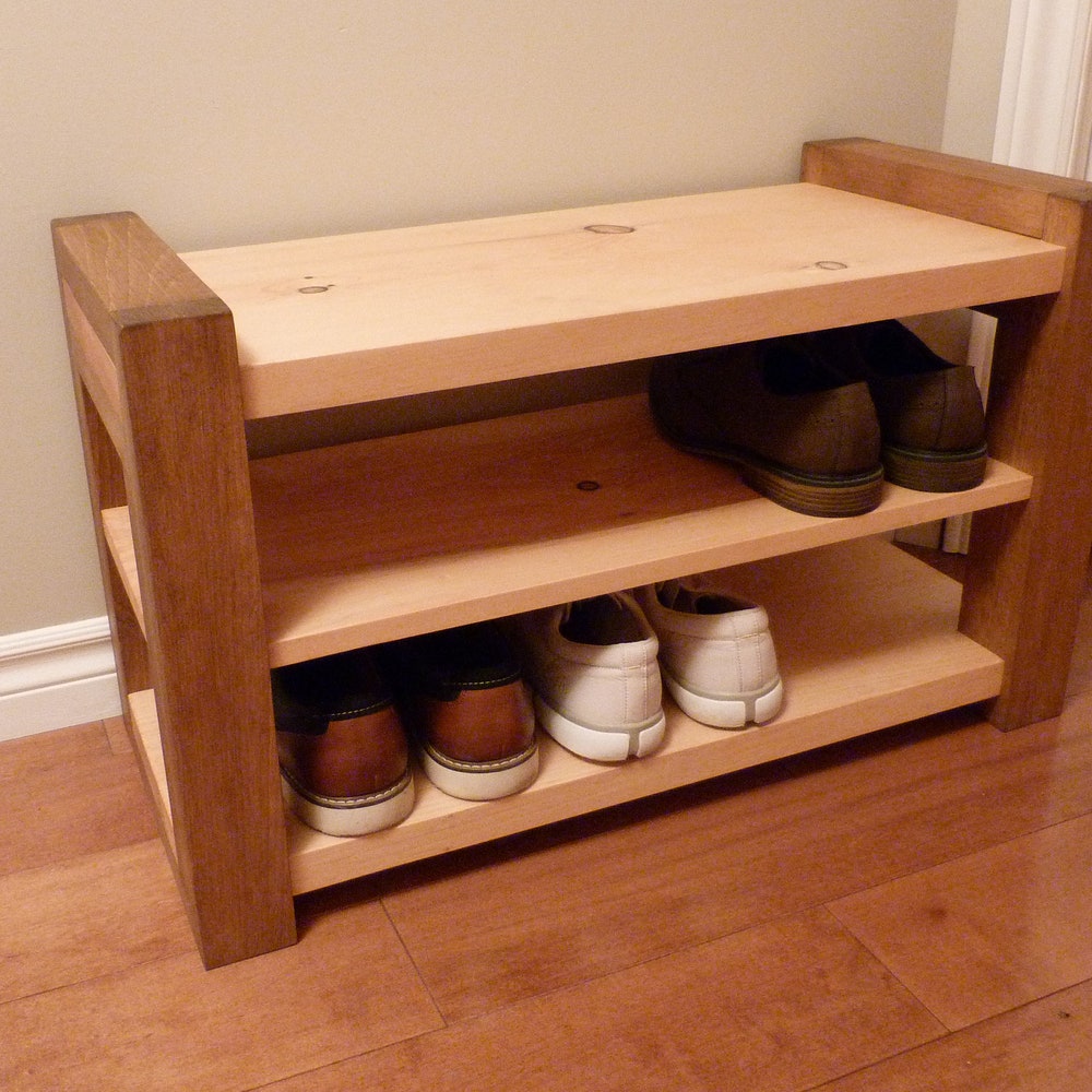 Made of solid pine, this sturdy modern and rustic style entryway shoe bench is perfect for any home, apartment or condo.