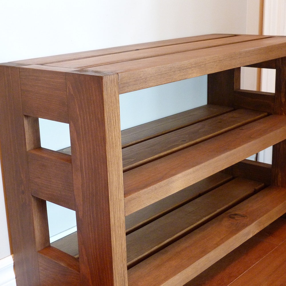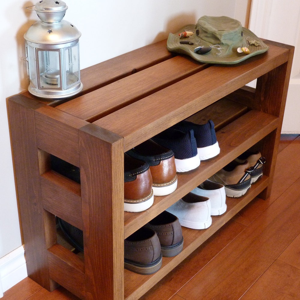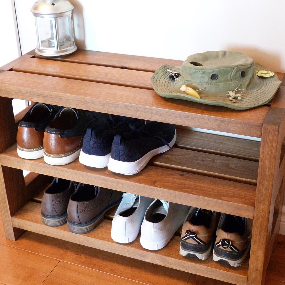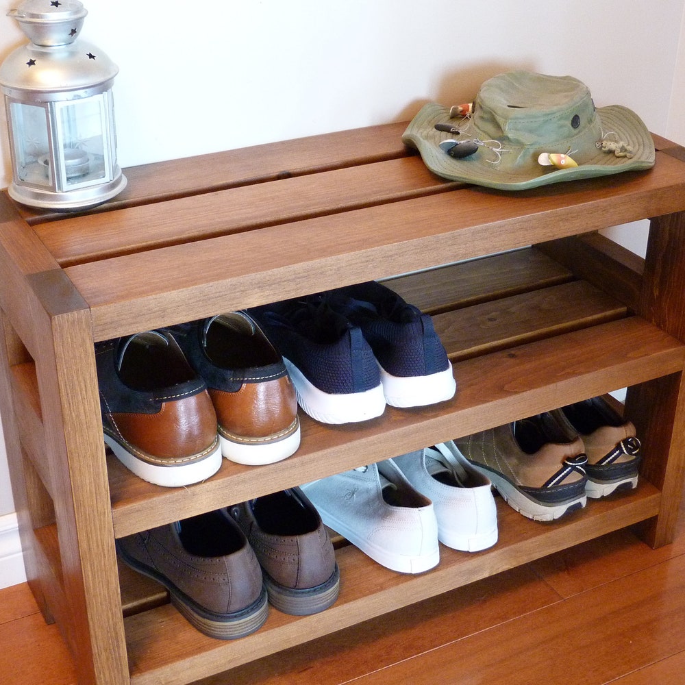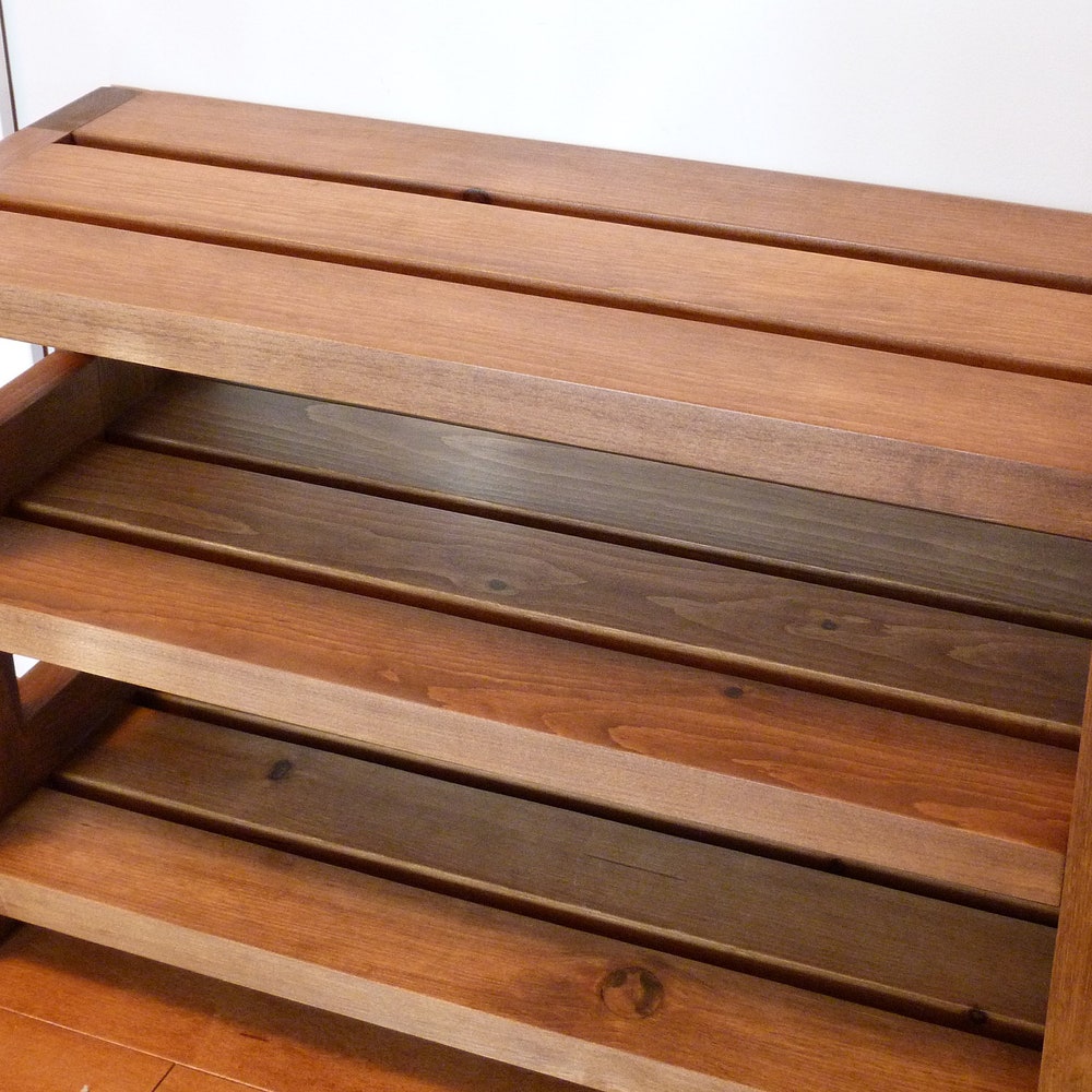 Made of solid pine, this sturdy rustic style entryway, hallway or mudroom 3 shelves shoe rack is perfect for any home, apartment or condo.
