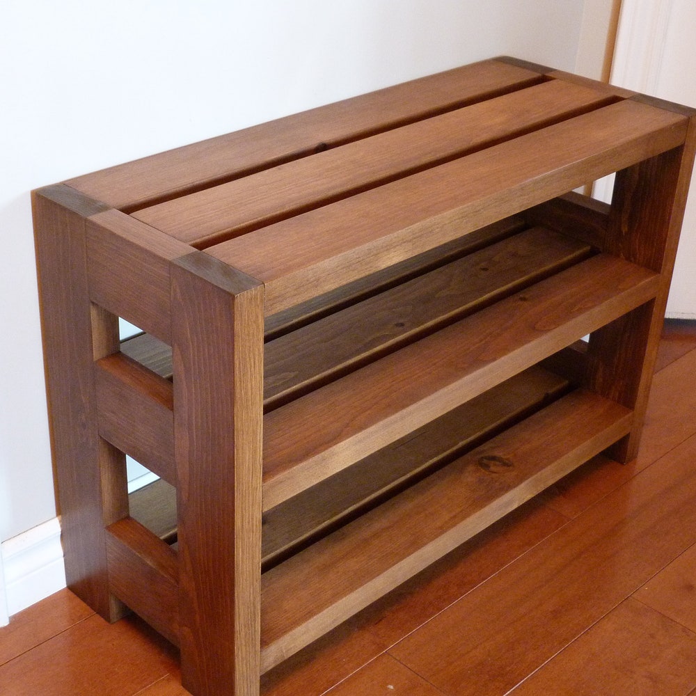 Stained and sealed with a beautiful finish, this shoe rack will make a nice addition to any coat rack available in our store.