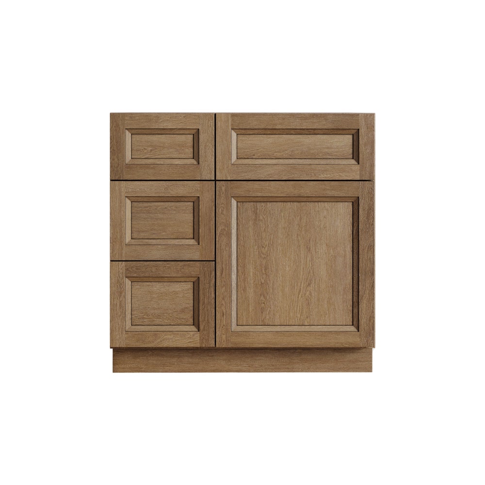 30″ Toffee Bathroom Vanity for Single Sink with Drawers on the Left, Brown Stained Traditional Comtemporary Bath Cabinet (Pre-Assembled)