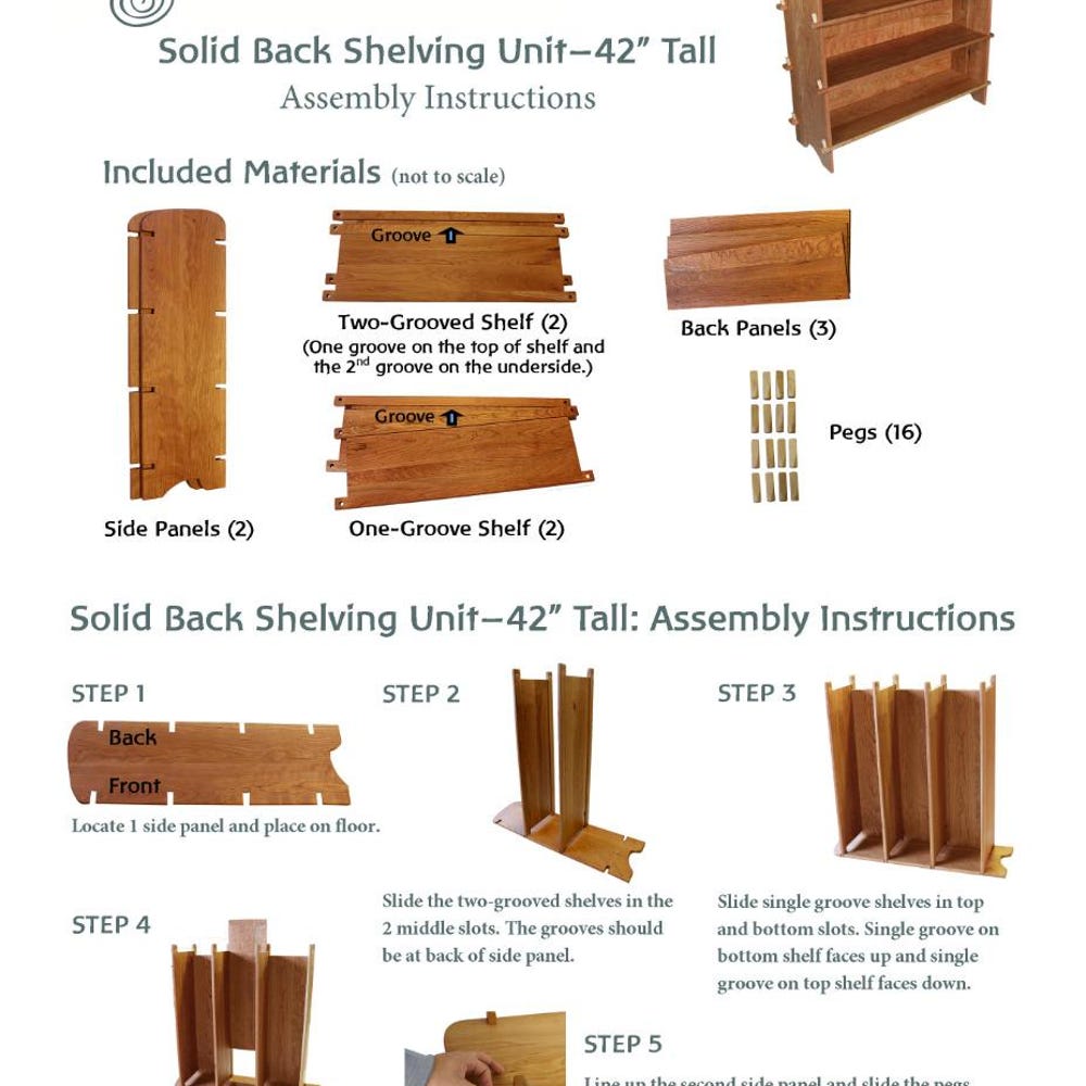 – Includes 3 shelves, 2 end panels, 2 back panels, and 12 pegs.