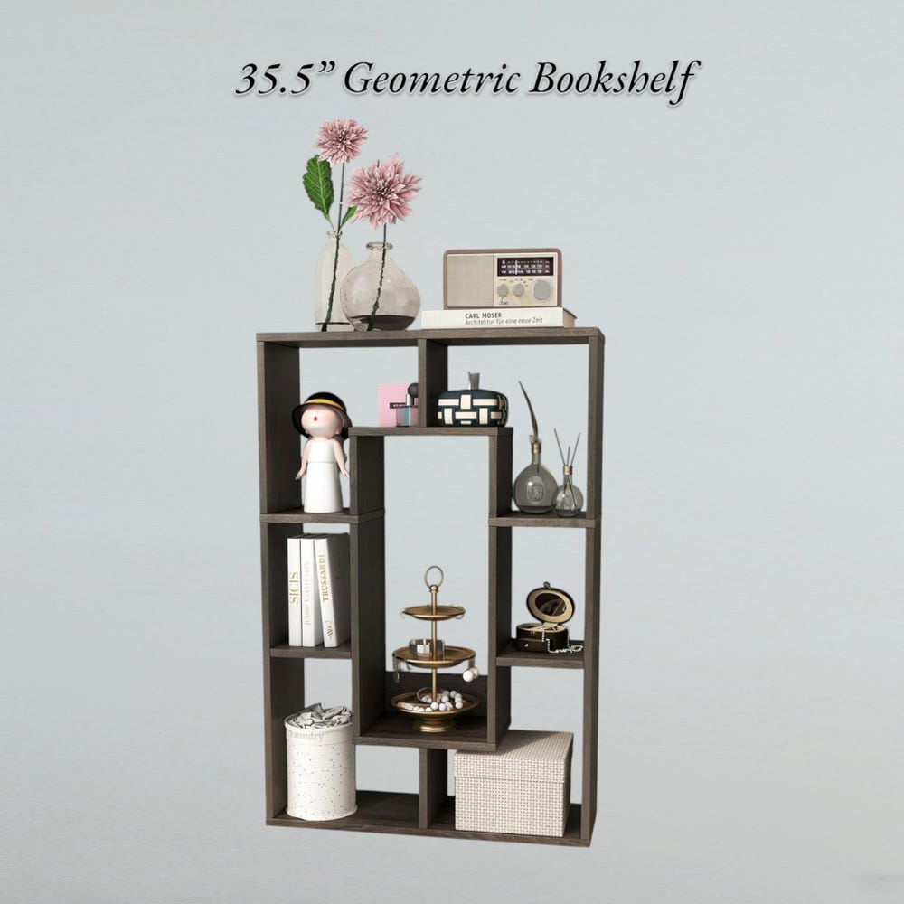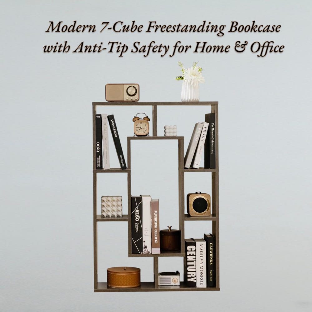 35.5” Geometric Bookshelf – Modern 7-Cube Freestanding Bookcase with Anti-Tip Safety for Home & Office