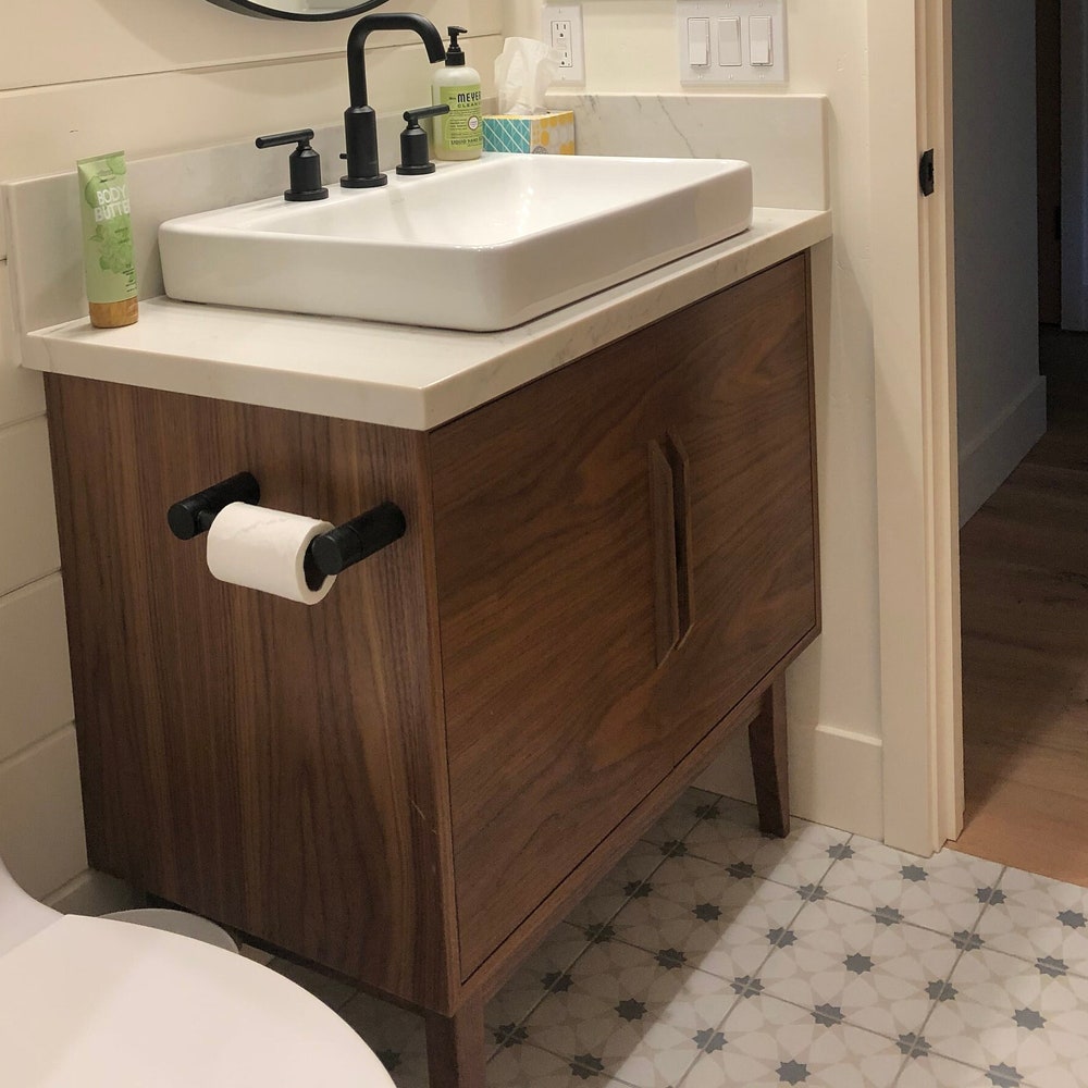 24″ Mid Century Bathroom Vanity Cabinet – Single Sink, 2 Doors, No Drawers – Custom to Your Unique Style – For New Home Build or Remodel