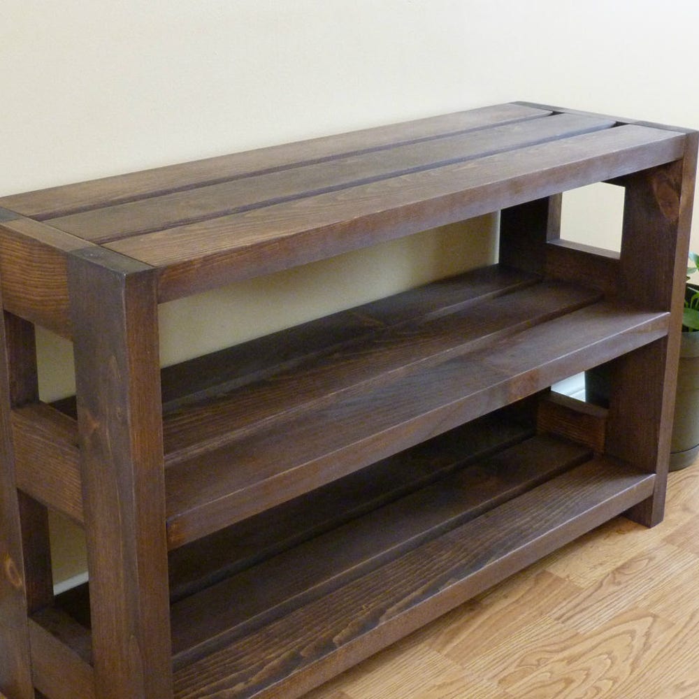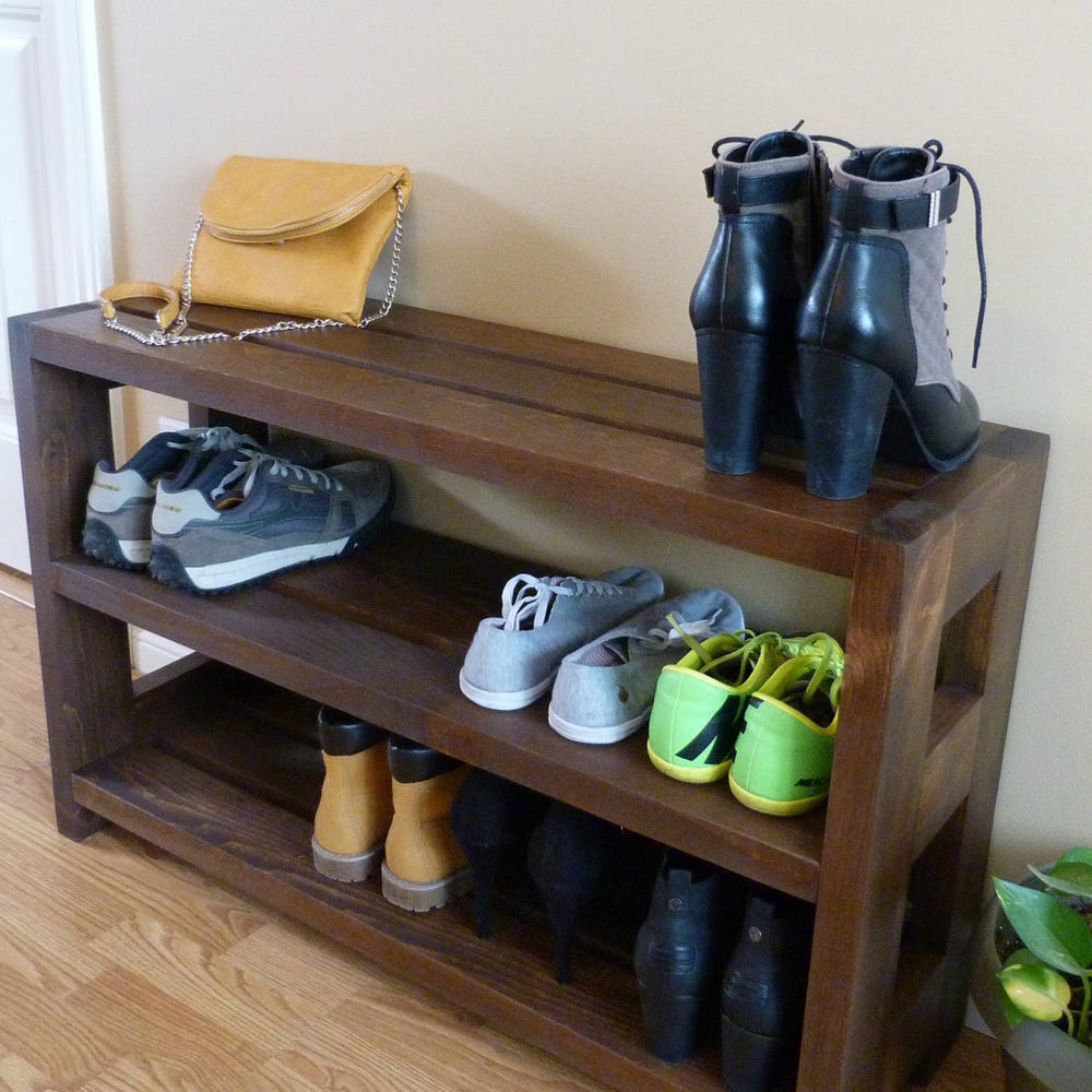 Made of solid pine, this sturdy rustic style entryway, hallway or mudroom 3 shelves shoe rack is perfect for any home, apartment or condo.