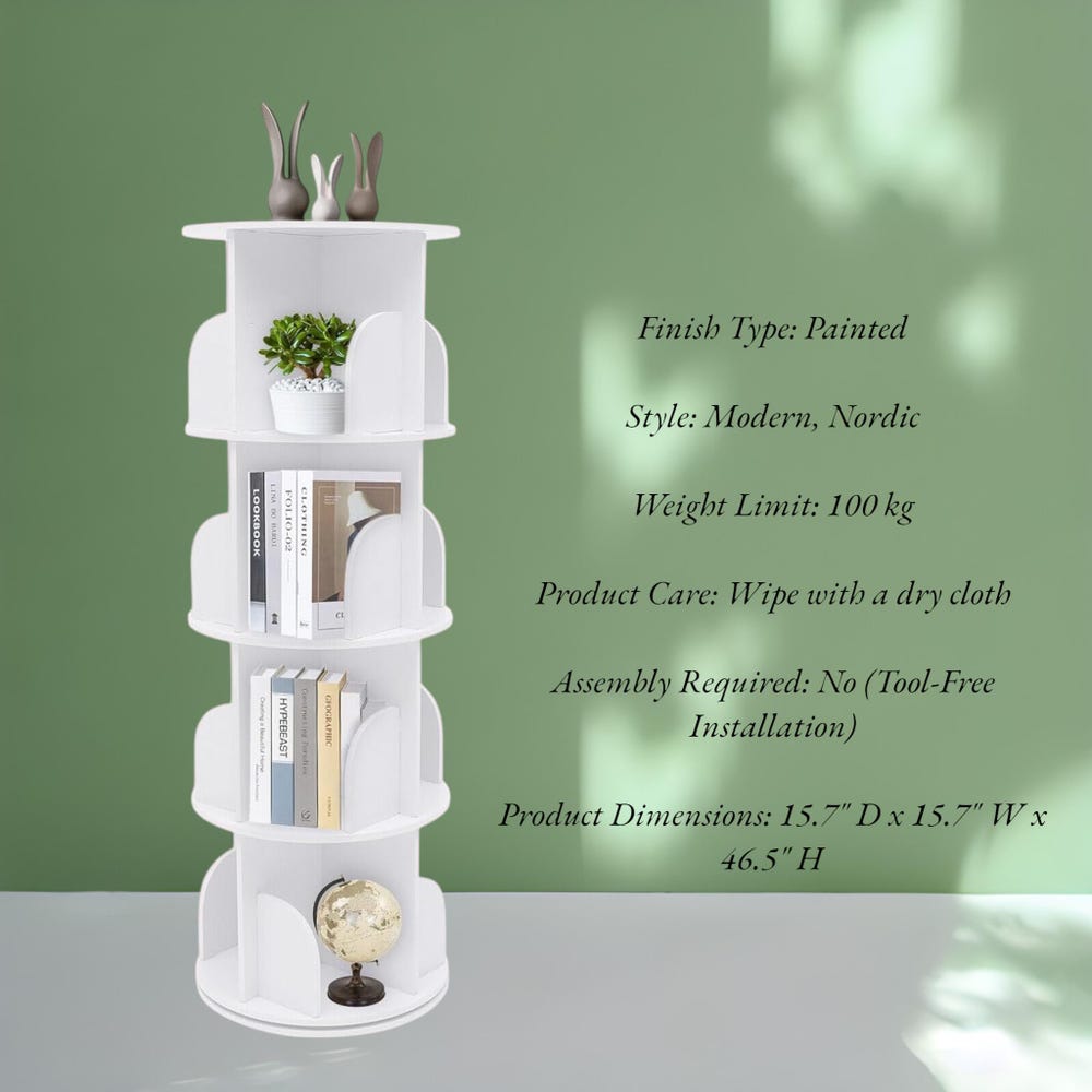 360 Rotating 4-Tier Bookshelf – Nordic-Style Freestanding Storage