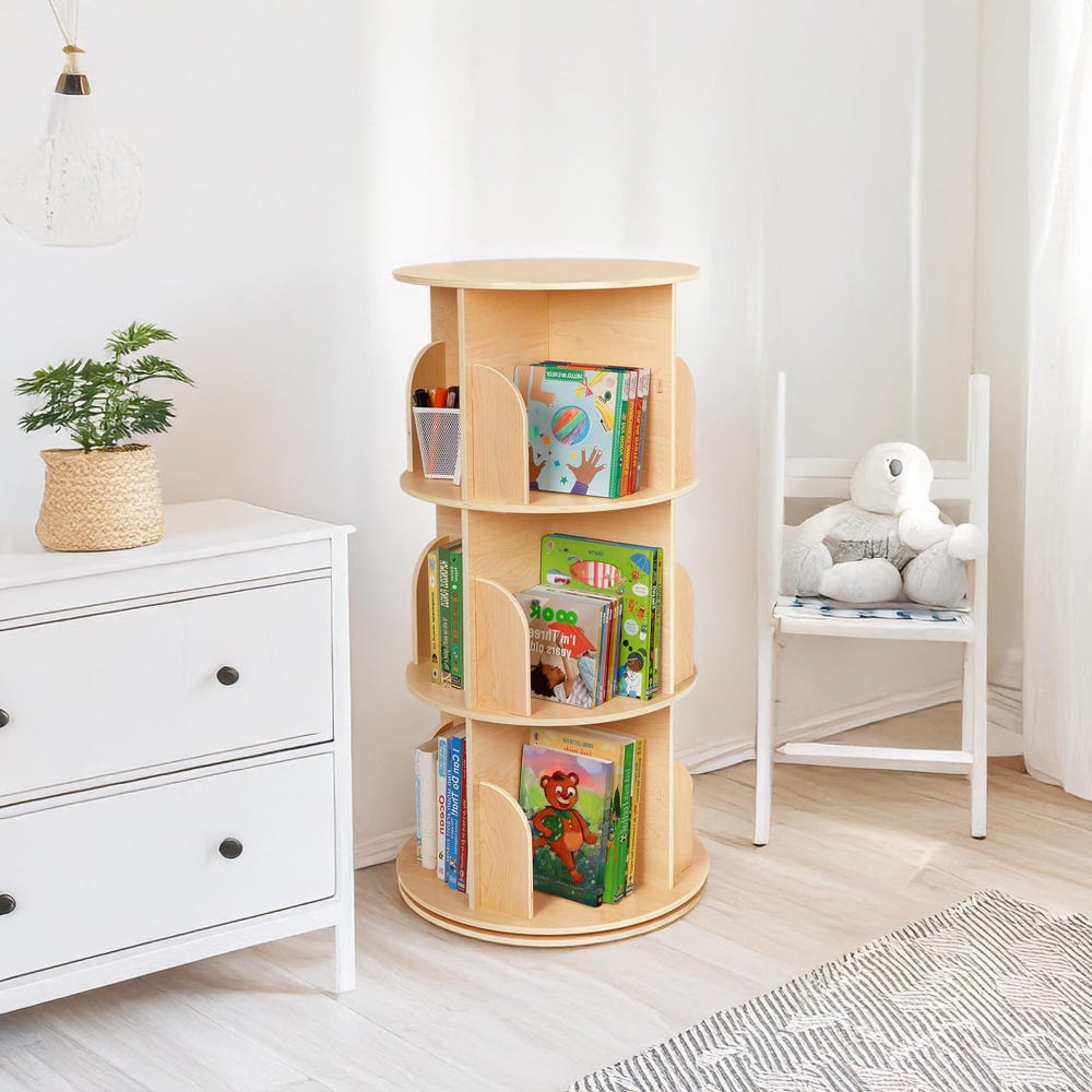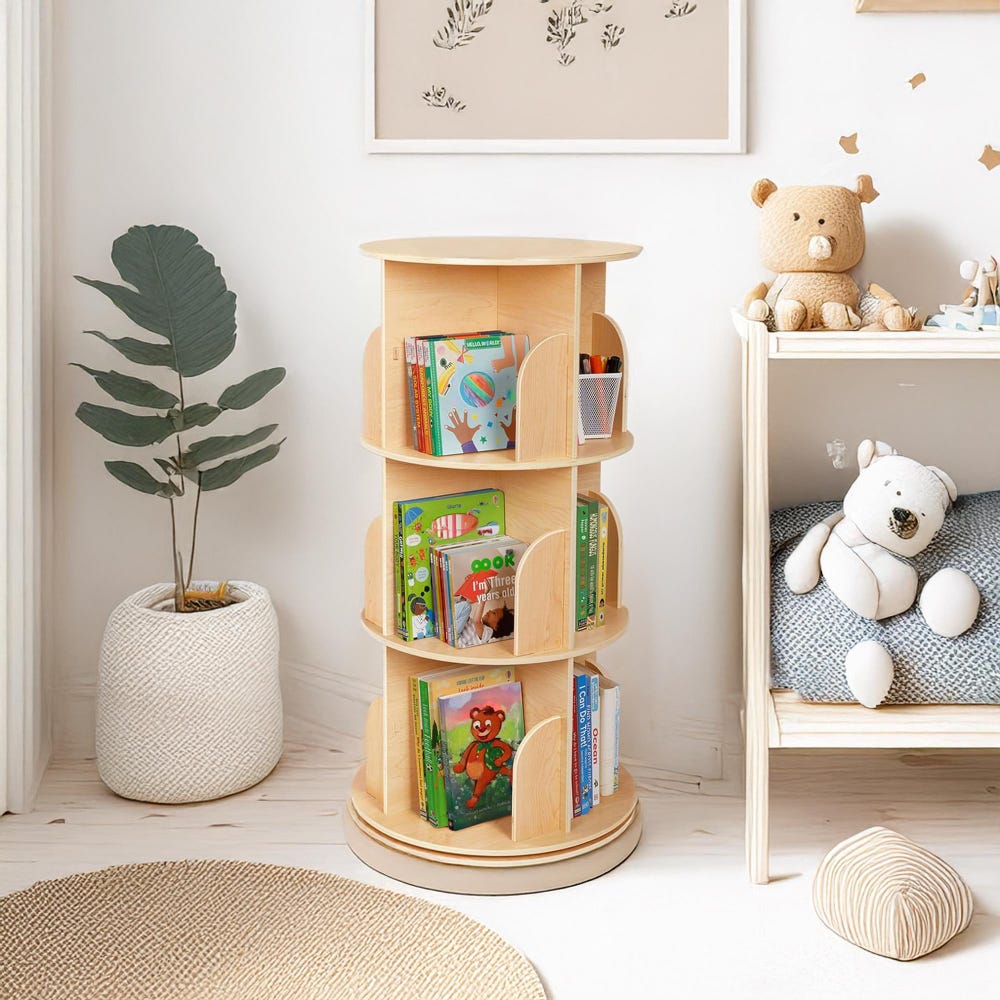 Crafted from durable poplar plywood, this modern bookshelf ensures maximum stability with its enlarged base—making it safe and friendly for children. Whether you’re organizing a Montessori-inspired space or adding a creative touch to your home, this versatile rotating shelf fits right in.