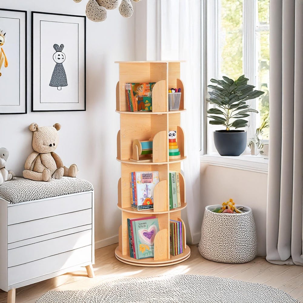 This bookshelf is a perfect choice for those looking for a rotating bookshelf, whether for a kids library, office bookcase, or desktop bookshelf. It works wonderfully as a rotating rack, a Montessori bookshelf, or even a stylish floor bookshelf. With its clever design, it serves as a book stand, book organizer, or modern rotating bookcase, fitting beautifully in both children’s rooms and professional spaces. From industrial bookshelves to space-saving kids bookshelves, this unit adapts to your lifestyle and aesthetic effortlessly.