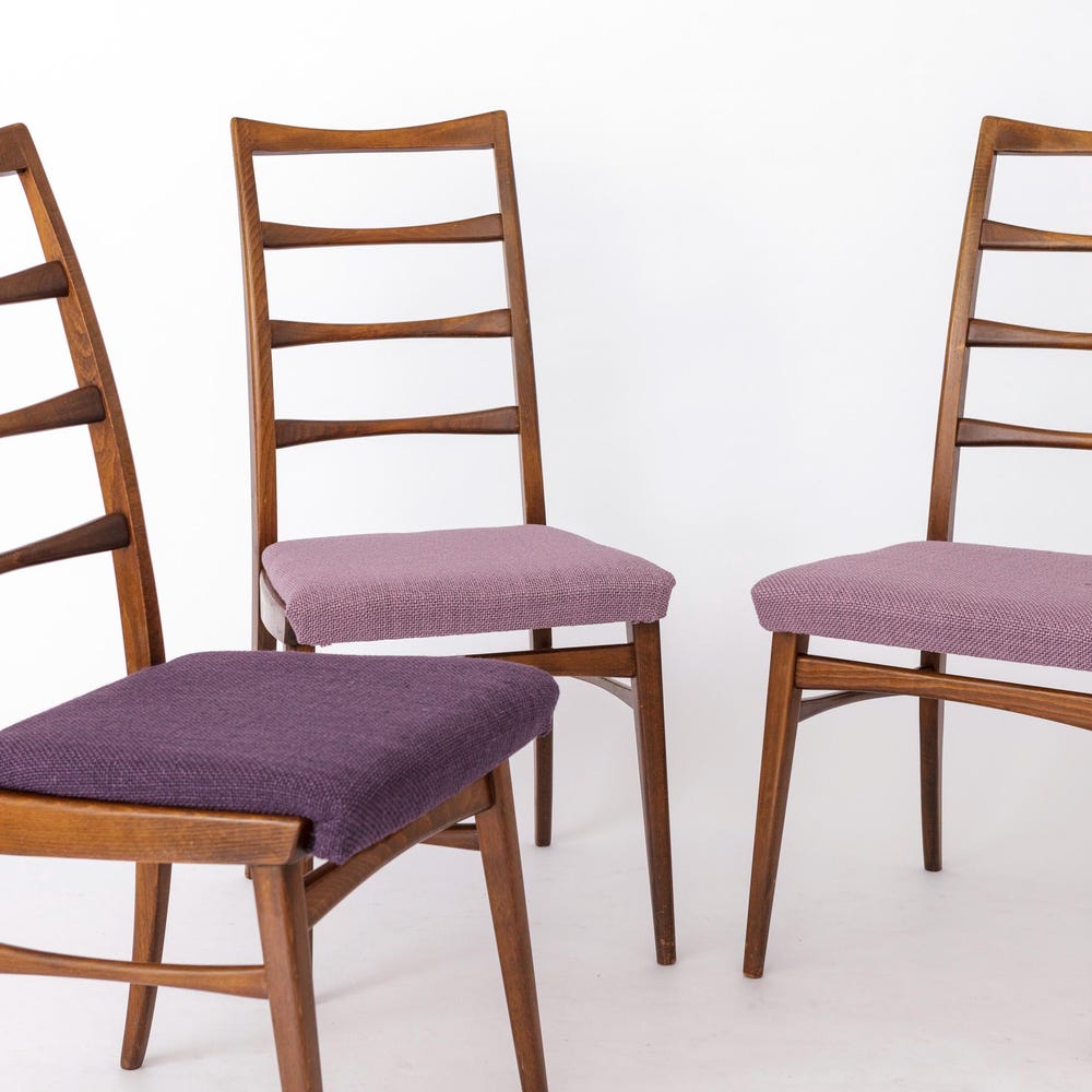 4 Vintage German Dining Chairs – 1960s, Dyed Beech Wood, Purple Upholstery