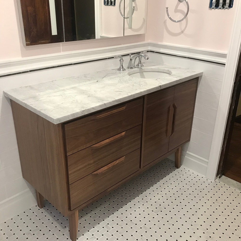 48″ Mid Century Bathroom Vanity Cabinet – Single Sink, 2 Door, 3 Drawers – Customize to Your Unique Style – For New Home Build or Remodel