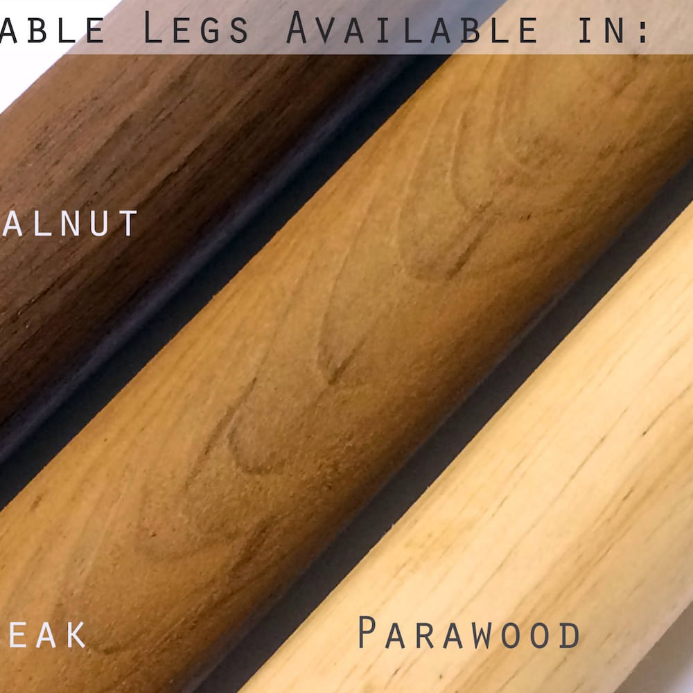 | Table Legs | Parawood, Teak, Walnut Stain Teak |
