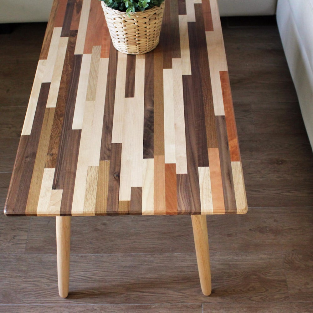 42″ Mixed Wood Coffee Table – Classic Mid Century Modern Furniture Eames Style Boho Design