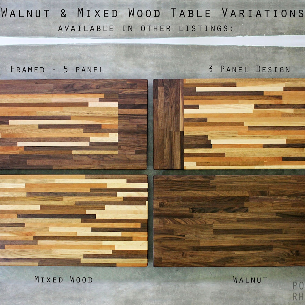 This beautiful hardwood table top is made from gorgeous, Grade-A solid Teak hardwood that’s given a very light & transparent stain to push it slightly from the already natural medium brown of Burmese teak to the med-dark brown of eastern walnut. Only hardwood is used, no sap wood. The wood is beautiful and unique, full of natural and organic character. The table glows with warm colors as we use penetrating pre-finish to make the wood’s own natural beauty glow. This is a celebration of material – only solid hardwood is used in the entirety of this table – we never use any fake materials, no MDF or press-board etc ever anywhere for any reason. The blocks are actually a more cohesive in person, the camera inevitably adds some contrast – well crafted wood is always more beautiful in person when you can actually see into the wood grain in the light