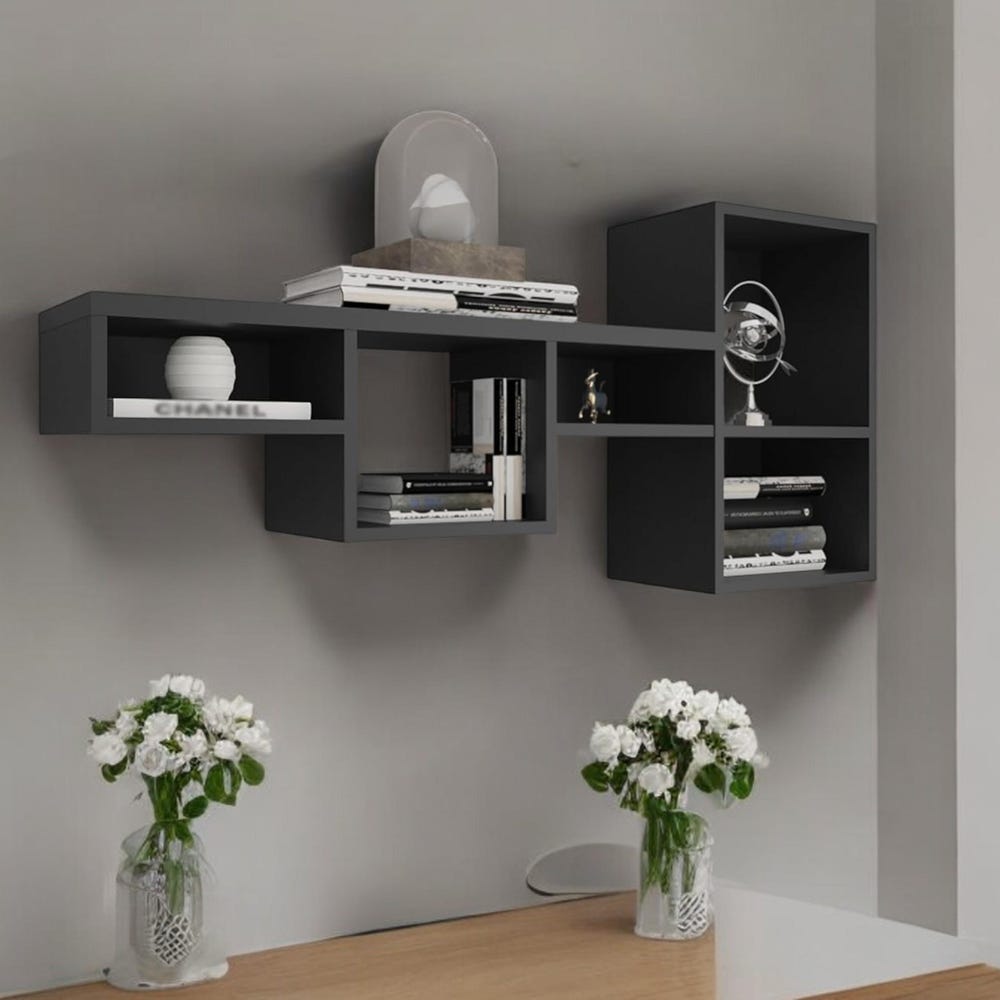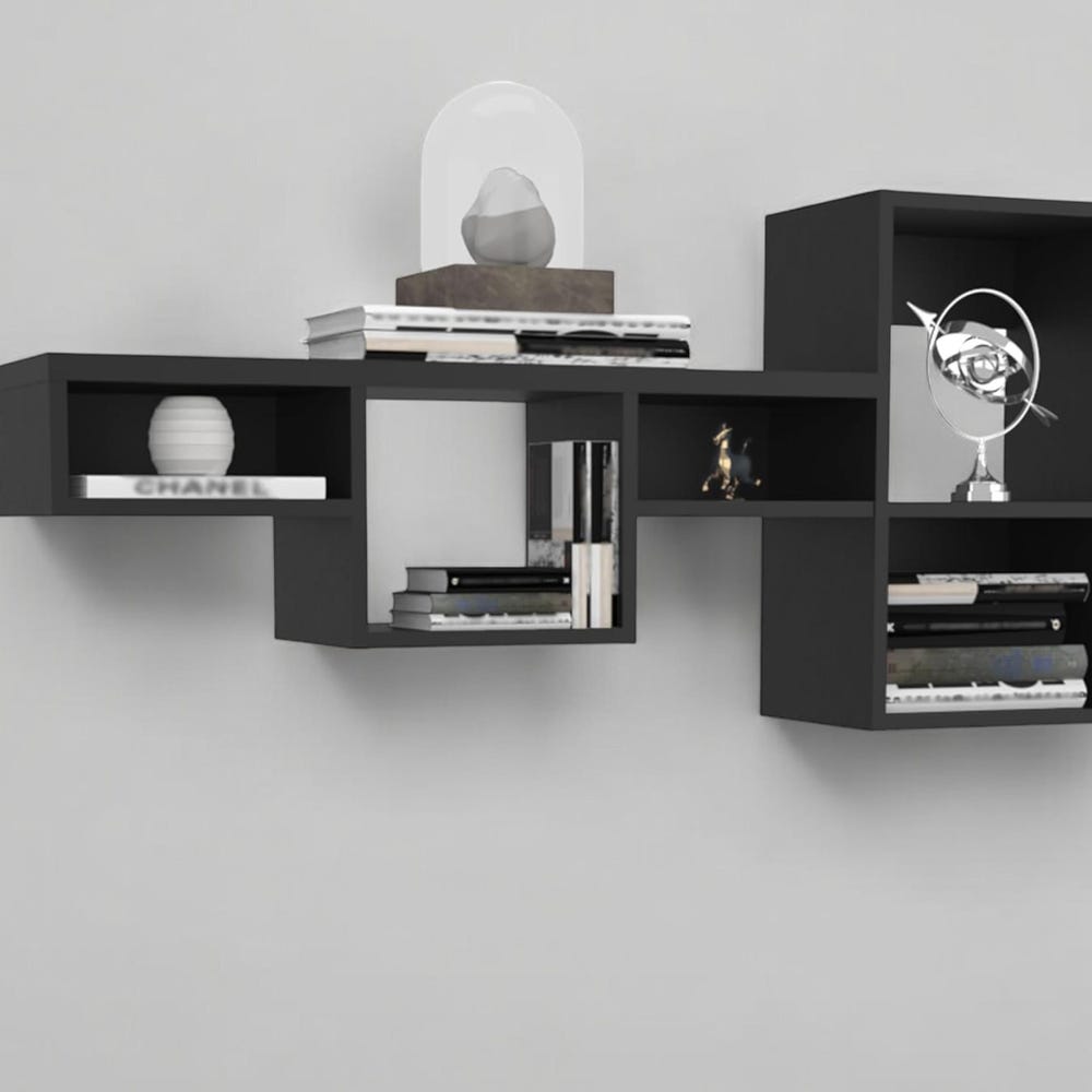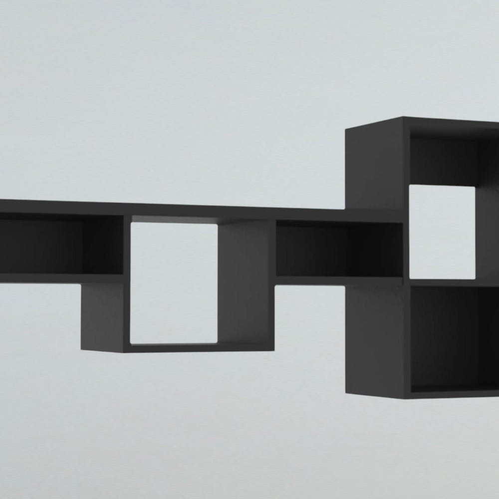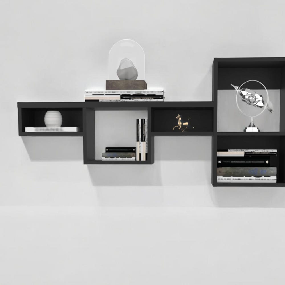 47″ Wide 7-Tier Wall Shelf – Dynamic Cube Storage for Living Room, Home Office, Bedroom (Black)