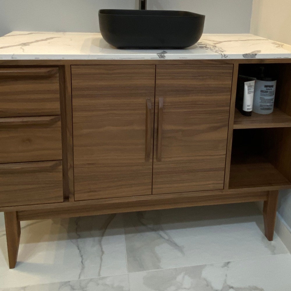 48″ Mid Century Bathroom Vanity Cabinet – Single Sink, 2 Door, 3 Drawers – Customize to Your Unique Style – For New Home Build or Remodel
