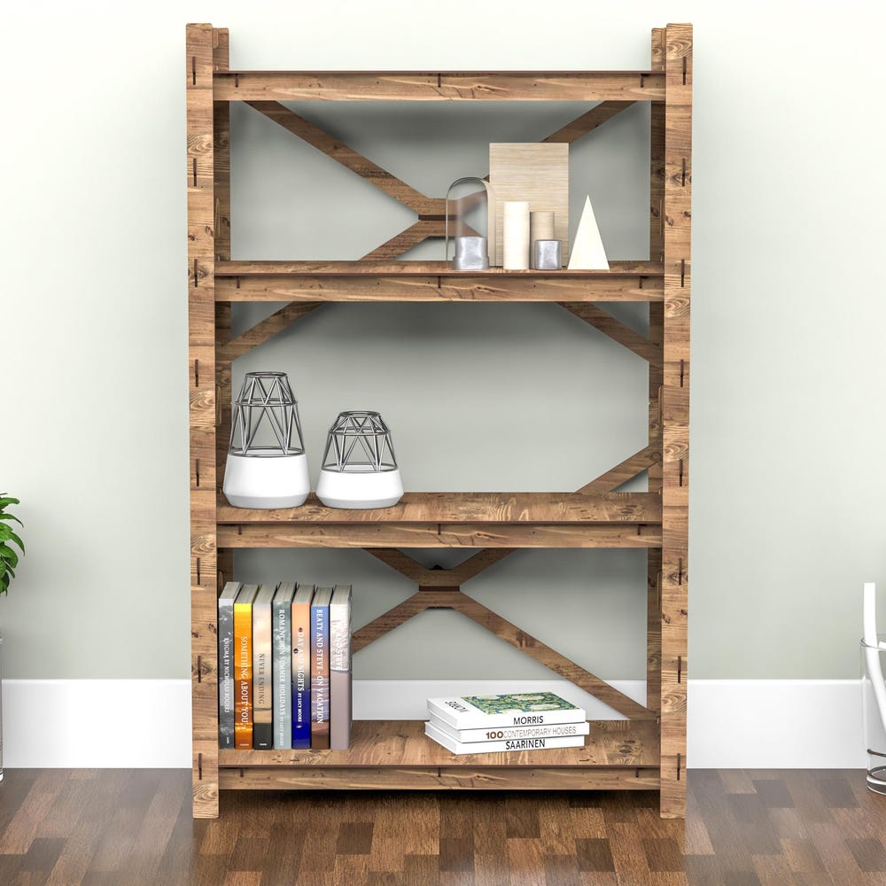 BIKUPA rustic bookshelf Reclaimed solid wood storage Vintage library Scaffold boards Furniture tv stand end table book organizer open shelf