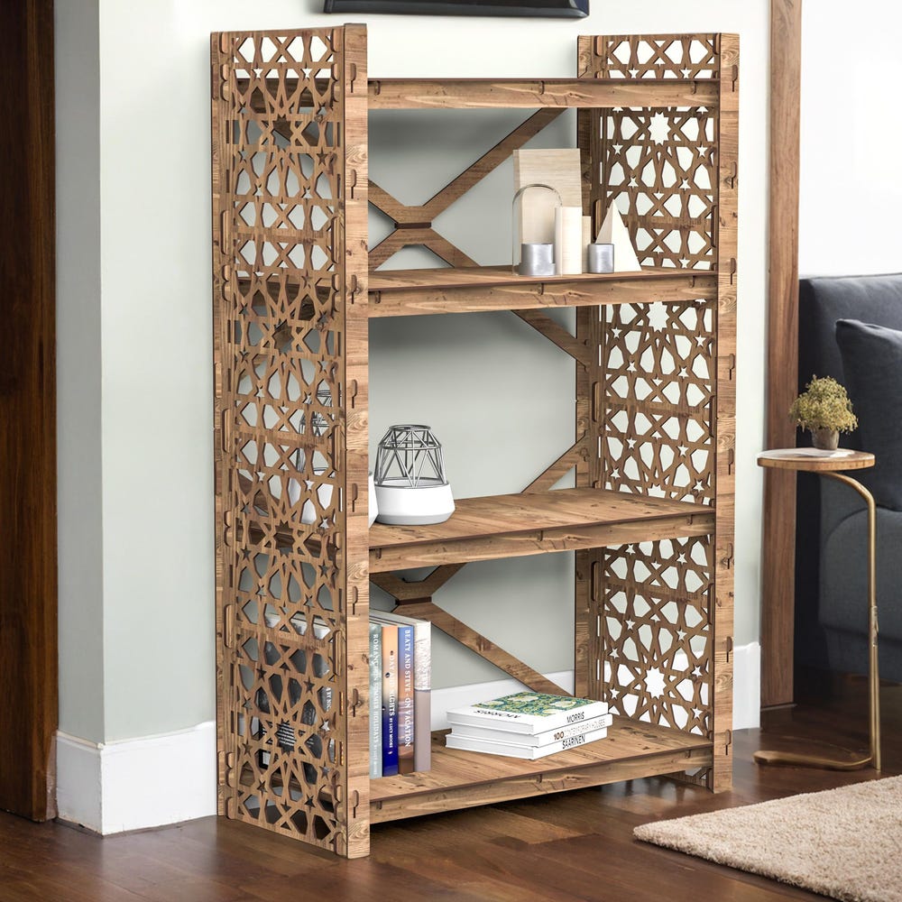 Introducing the ‘Hexagonica’ wooden bookshelf, meticulously crafted from finely sanded, top-grade plywood.