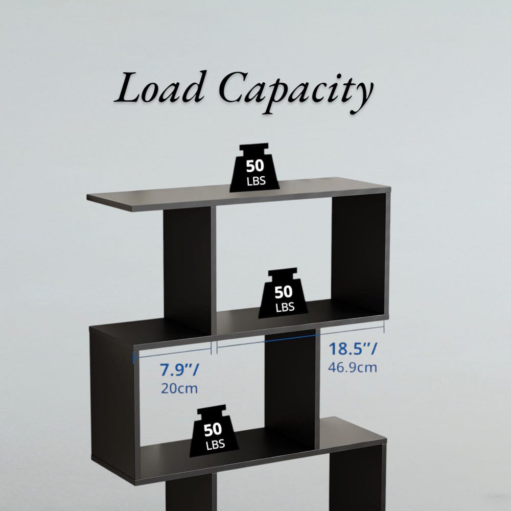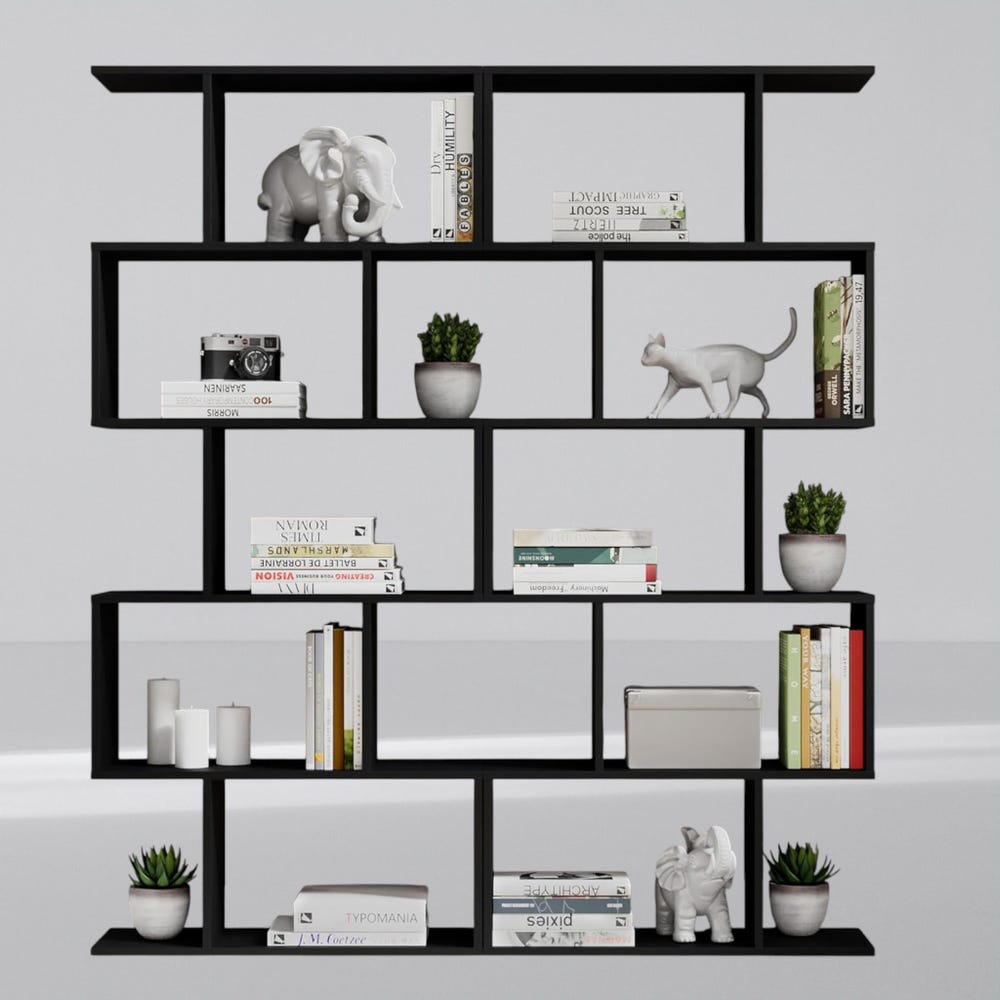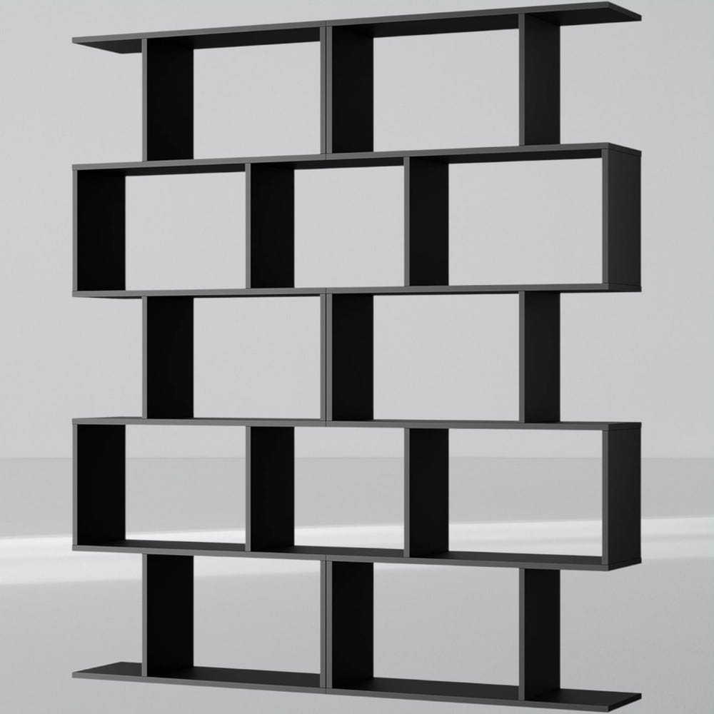 5-Tier S-Shaped Geometric Bookcases (Black, 62.6″ Tall) | Modern Room Divider & Display Shelves for Living Room, Office, Bedroom -Set of 2