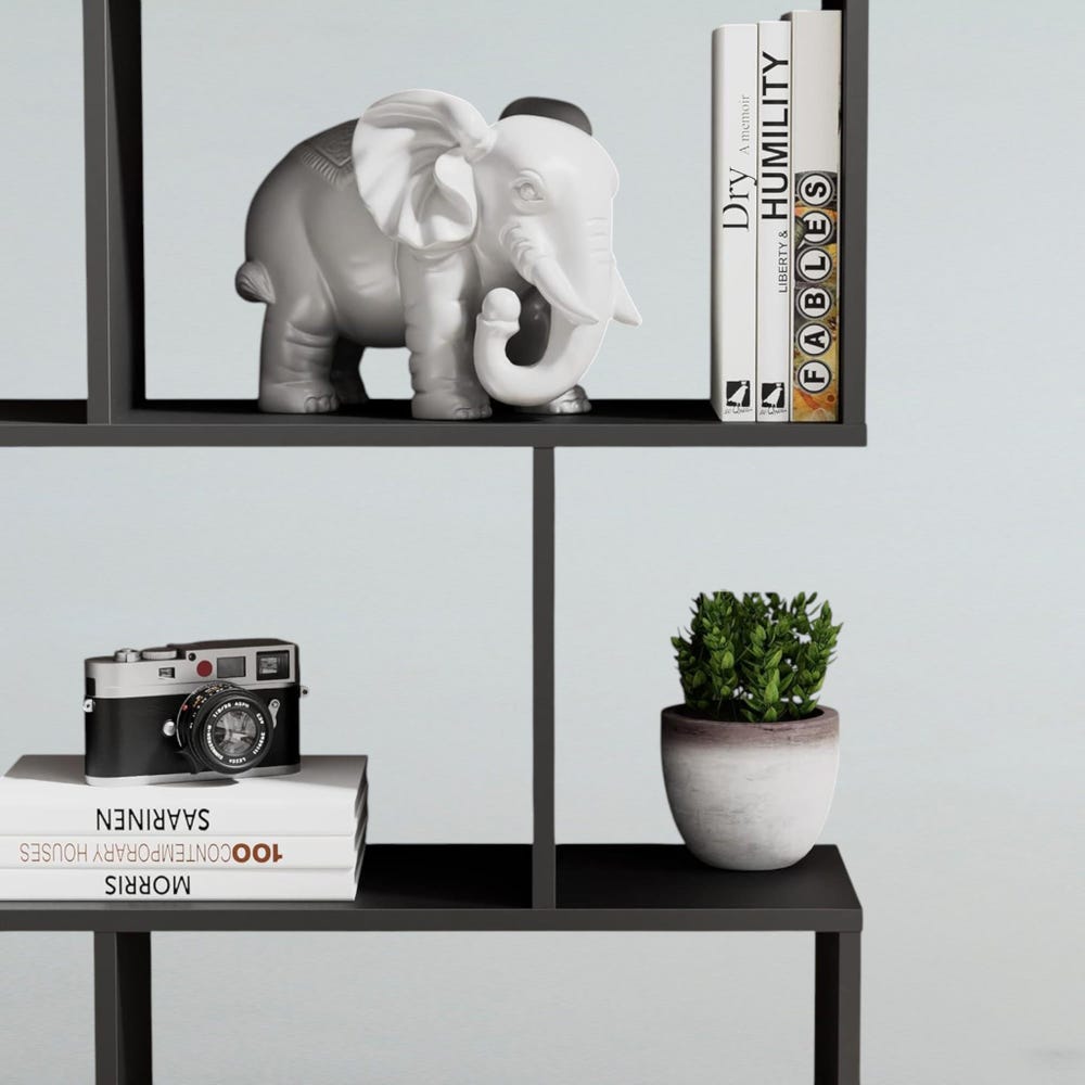 Double up on style and functionality with this Set of 2 S-Shaped Geometric Bookcases, the perfect fusion of modern art and practical storage. Standing at 62.6” tall with a sleek black painted finish, these bookshelves offer eye-catching asymmetry while delivering ample space to organize and showcase your favorite things.