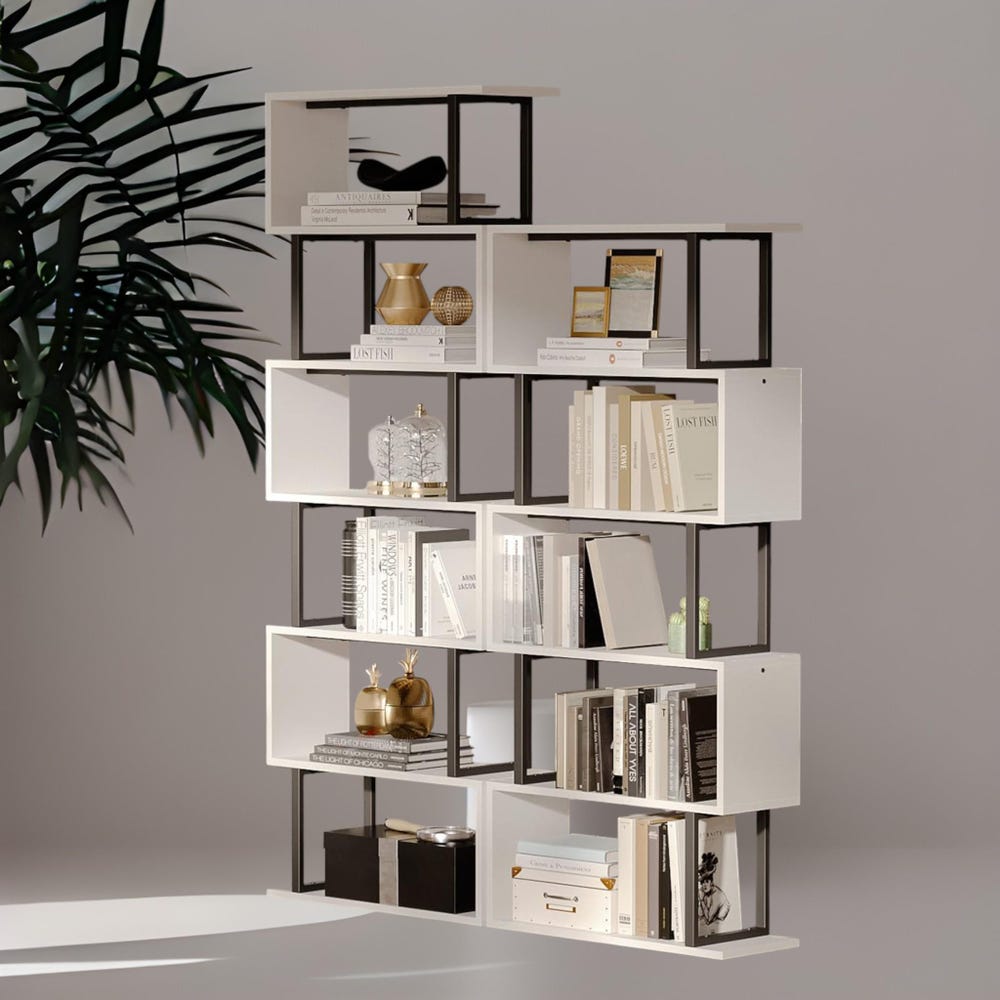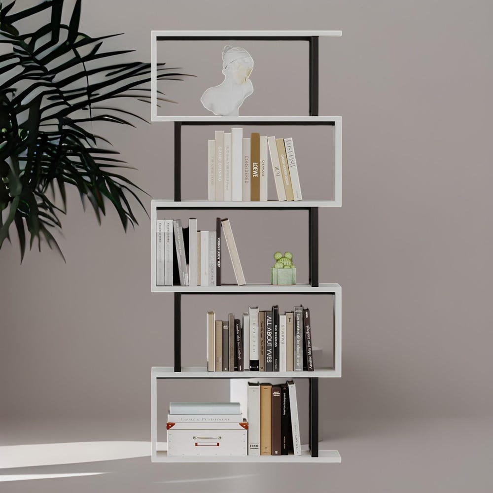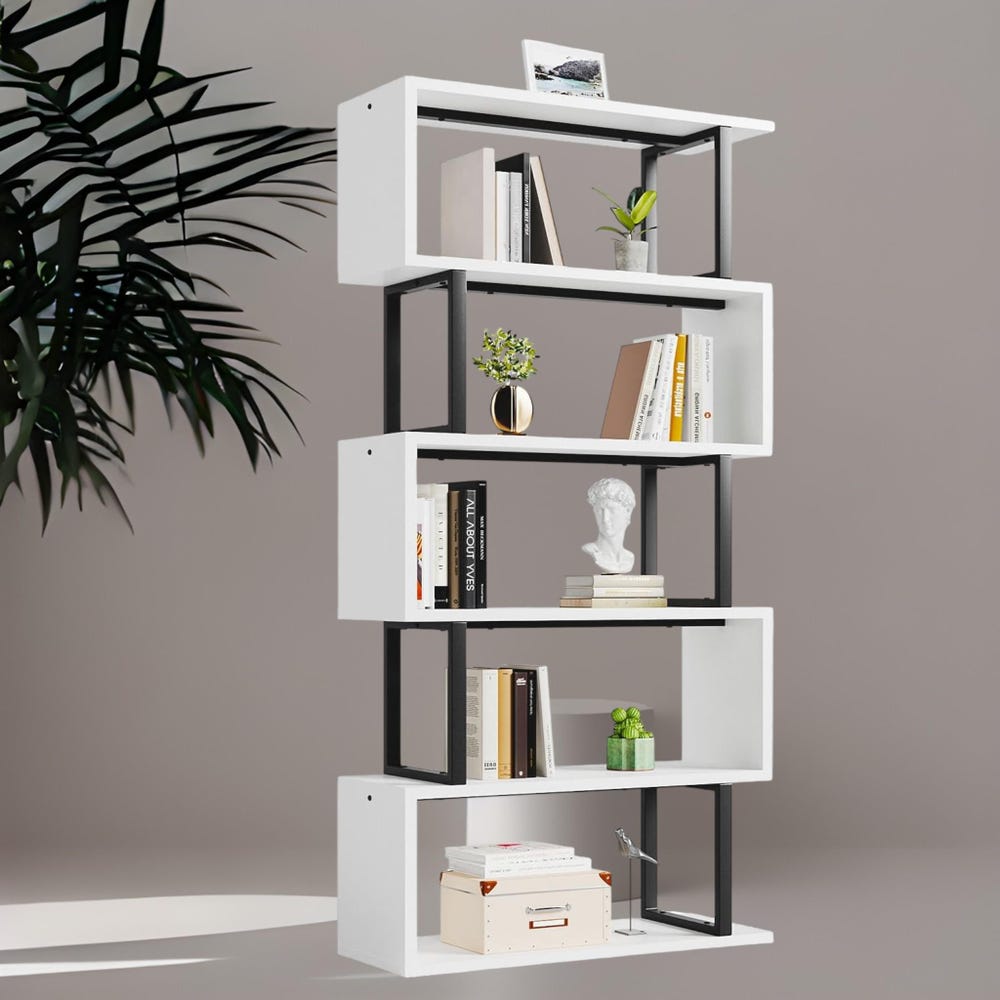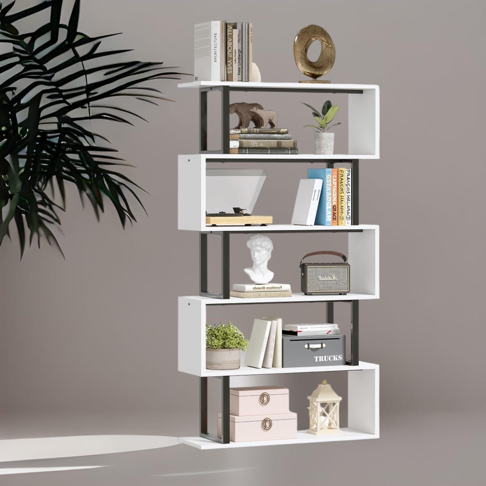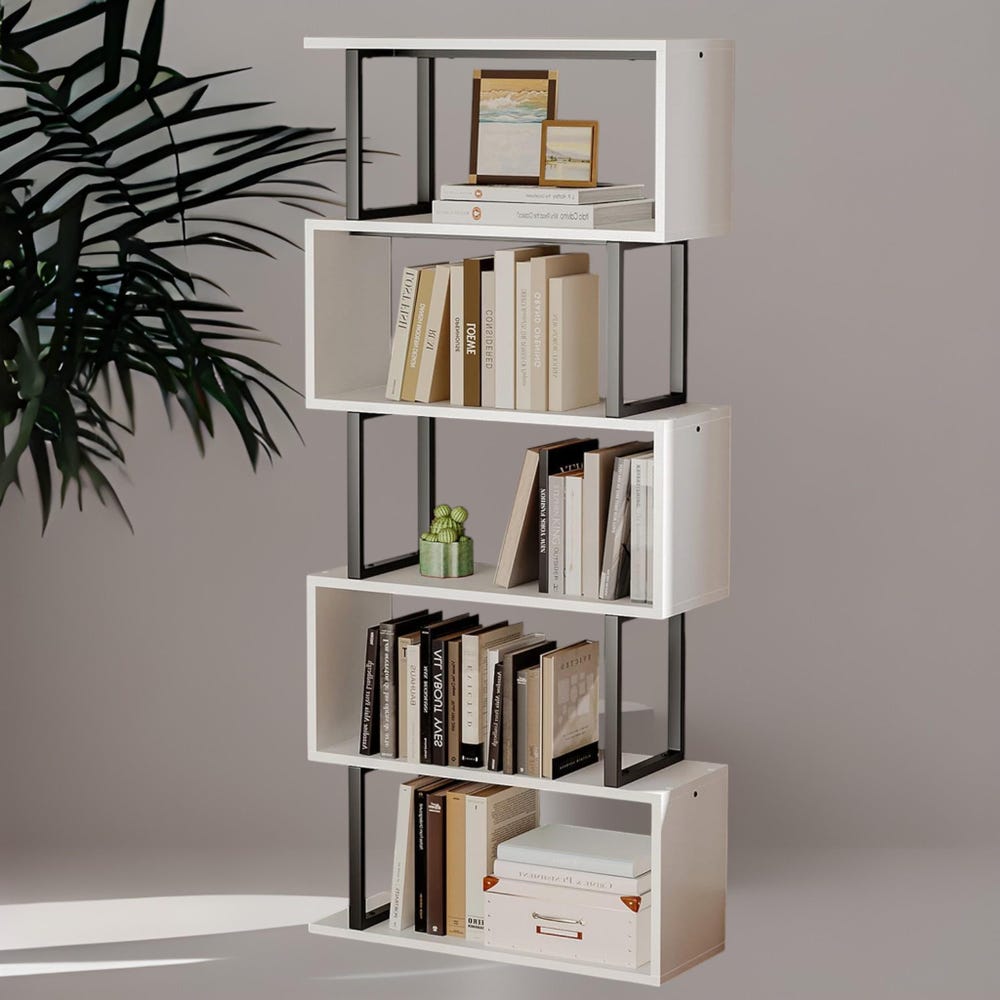 Redefine your storage style with this wider and taller 5-tier S-shaped bookshelf, a modern centerpiece that’s as practical as it is eye-catching. Designed for those who love sleek lines and smart organization, this geometric shelf is perfect for showcasing your books, plants, and décor—all while saving space.