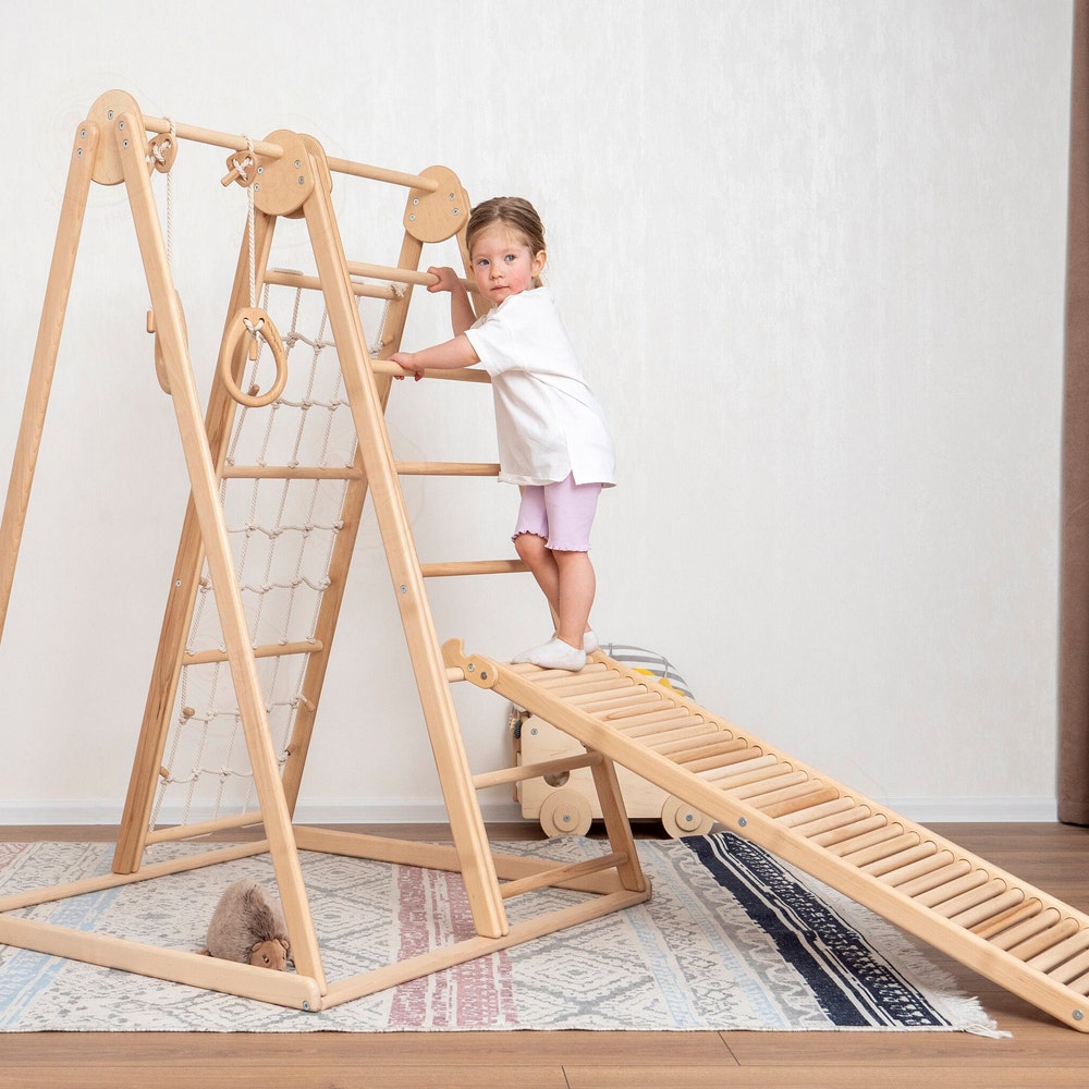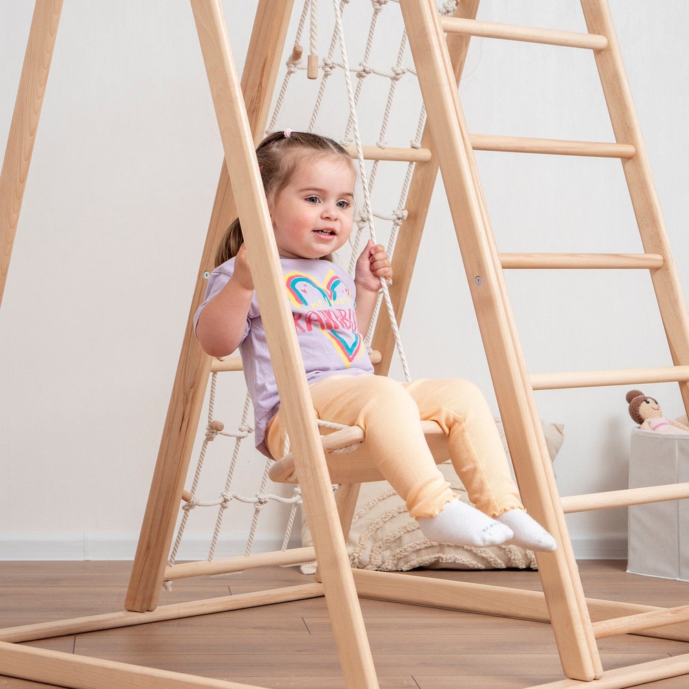 55×40″ Up to 6 Years Baby Mobile Large Triangle Climber Scandinavian Indoor Playground, Busy Board Massager Ramp & Waldorf Rope Accessory