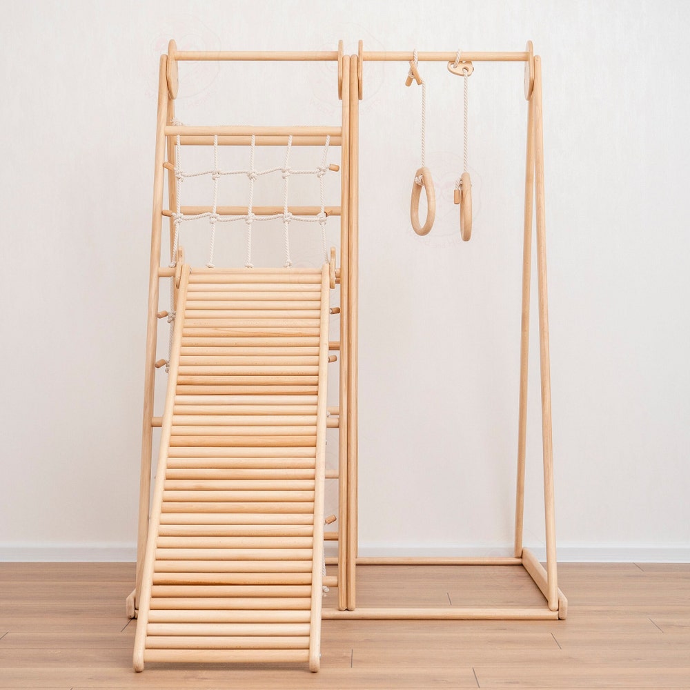 This Listing Consists of 3 Climbing items: ⛺️ Large Triangle complex in Natural wood color🐇 One Large Massager ramp⛺️ One of these Accessories in the options: 🐇 Pair of Gymnastic Rings⛺️ Rope Swing🐇 Rope Ladder The Large Scandinavian Triangle Gymnastic Complex is a multifunctional climbing tower. Based on the Montessori teachings, the complex is an […]